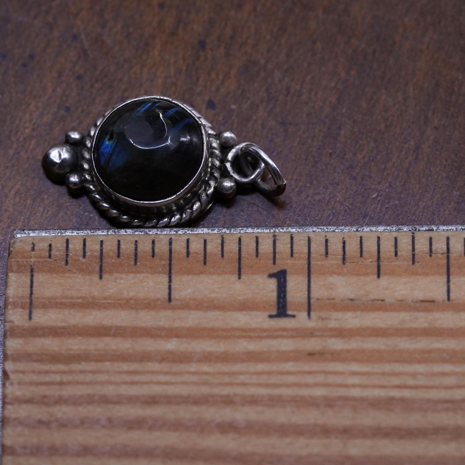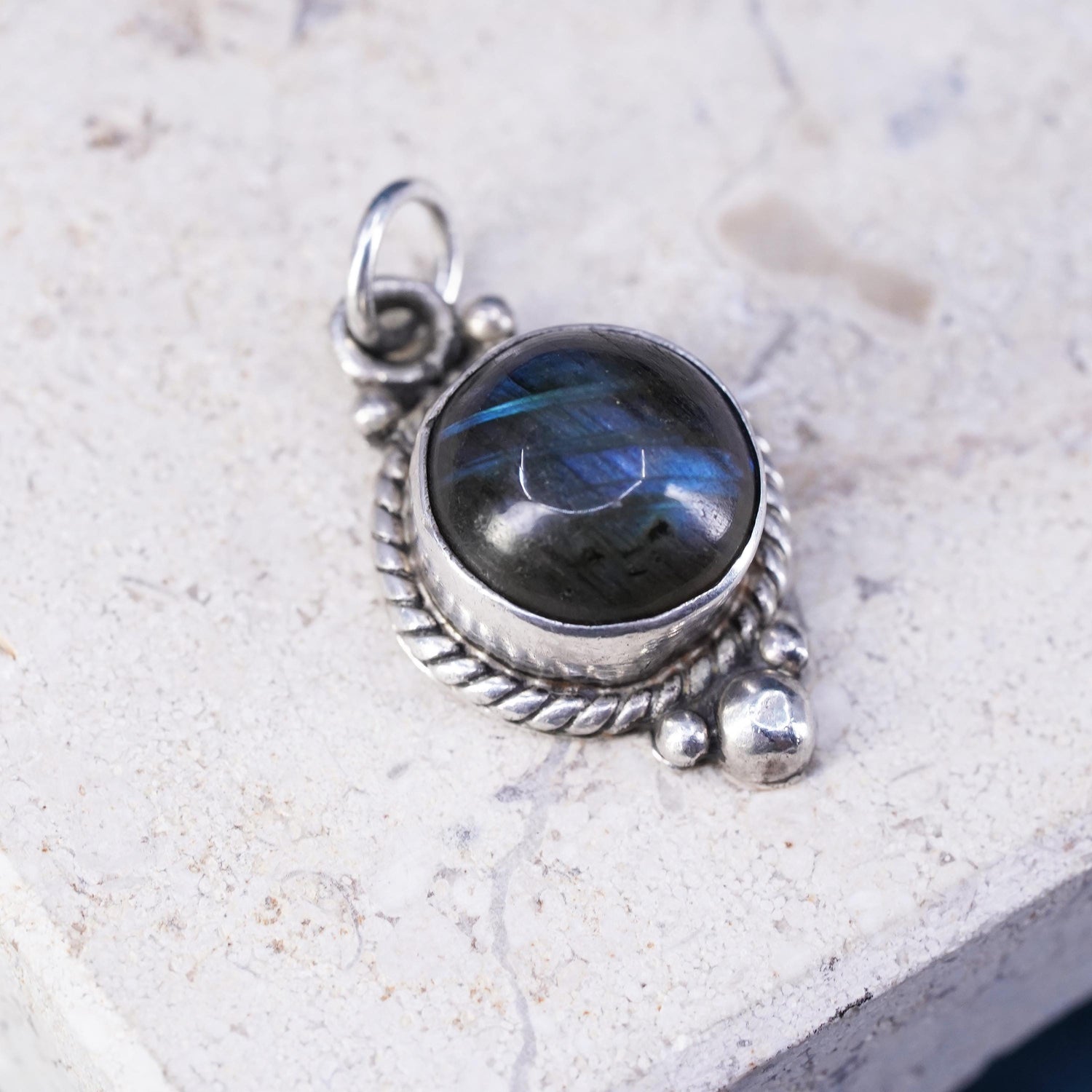 Vintage sterling silver handmade pendant, 925 circle charm with labradorite
