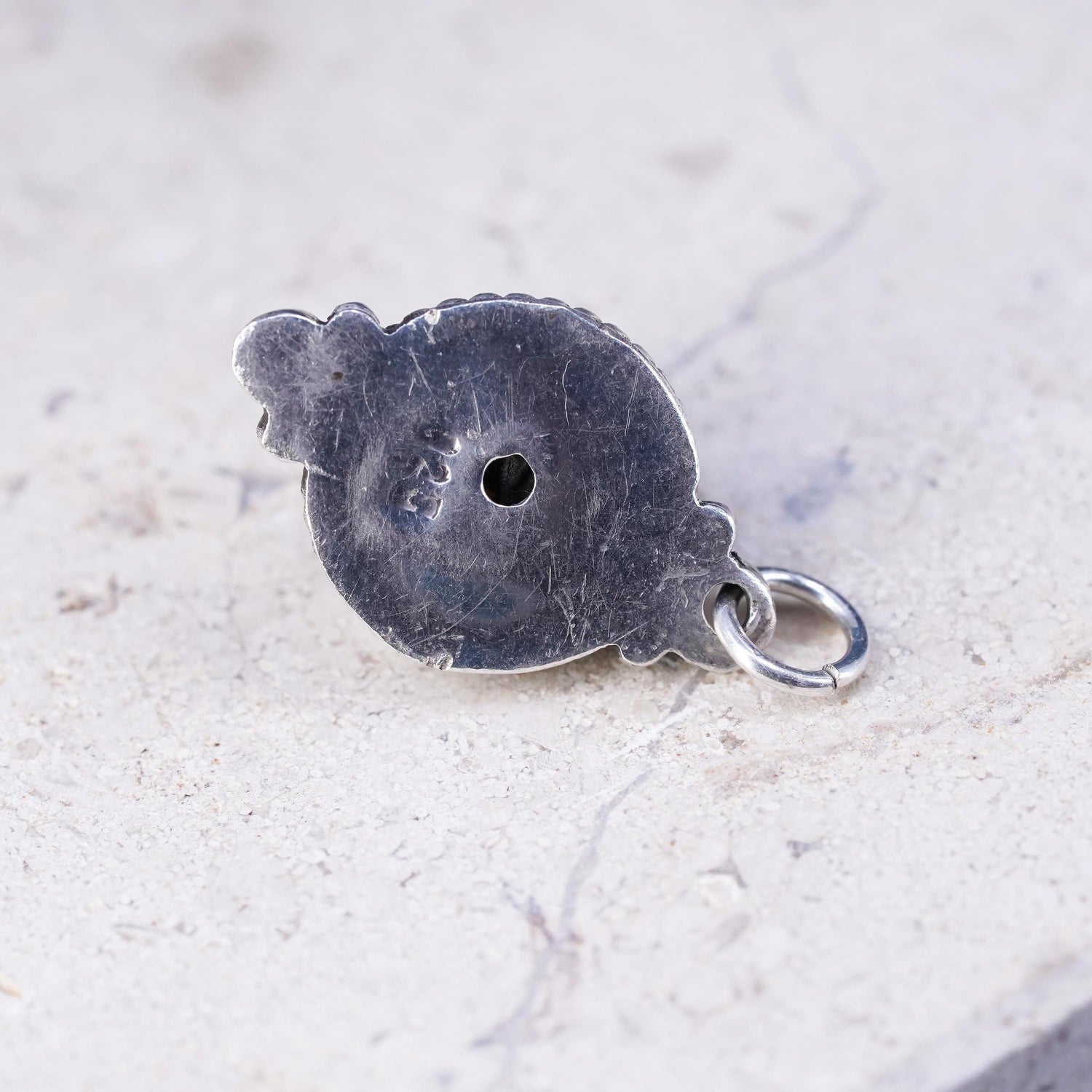Vintage sterling silver handmade pendant, 925 circle charm with labradorite, stamped 925