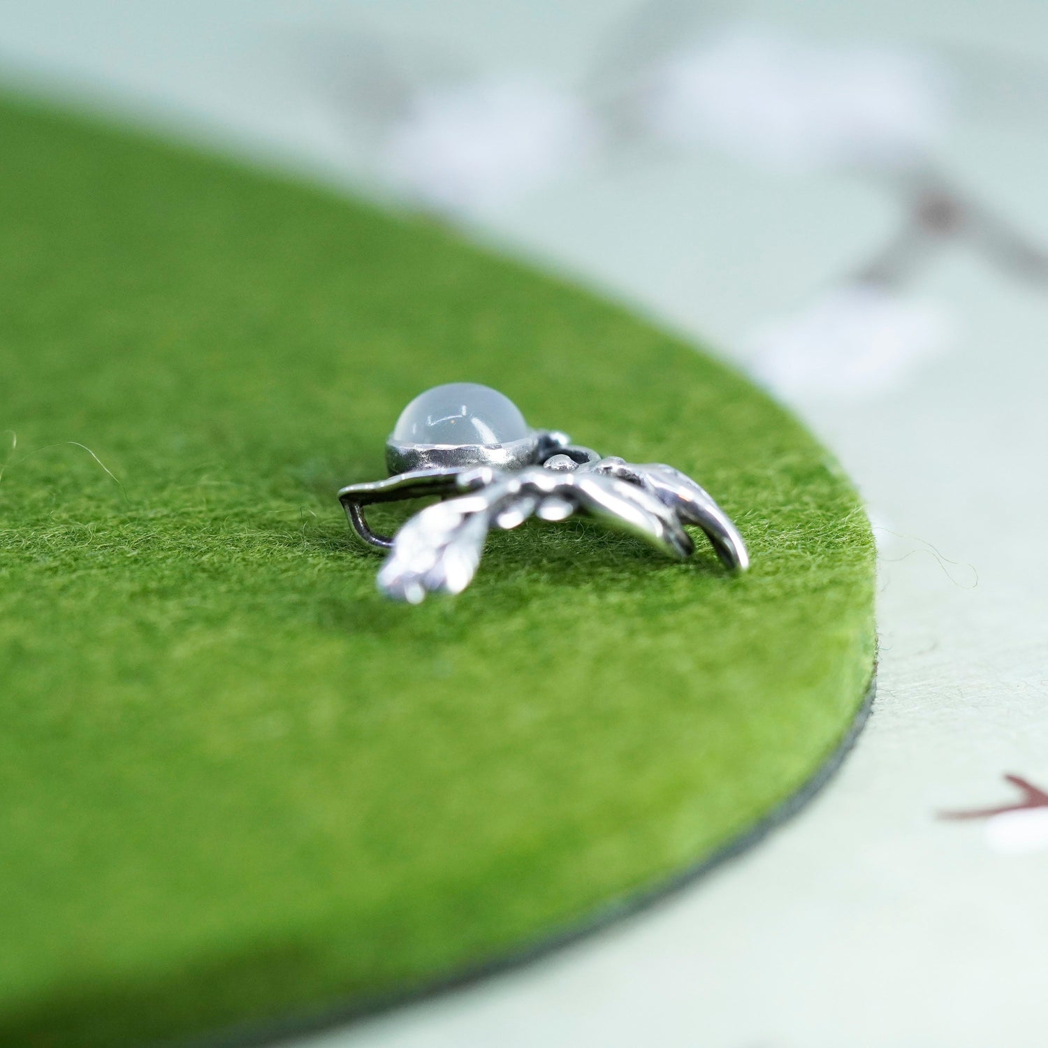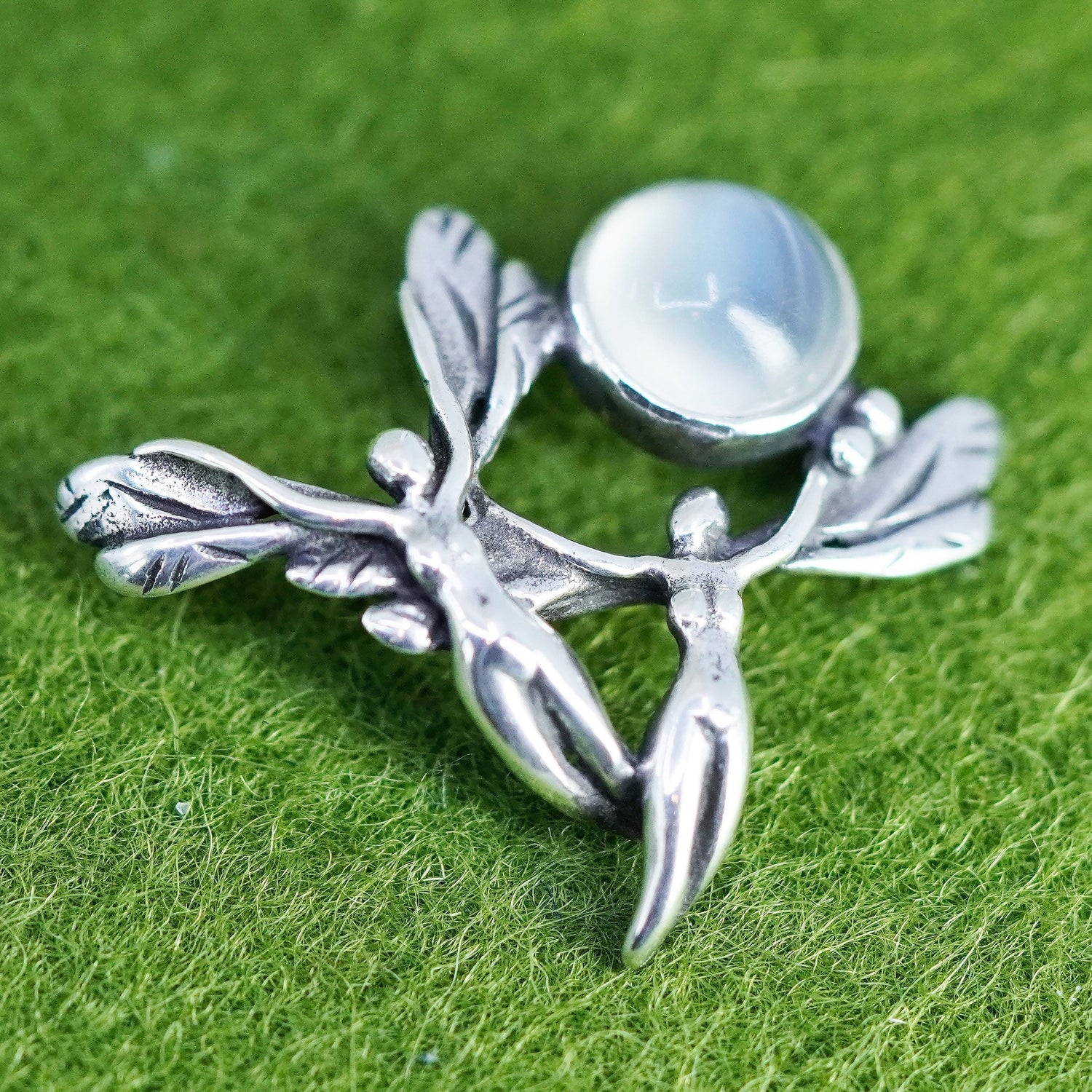 Vintage Sterling silver handmade pendant, 925 fairy with round moonstone
