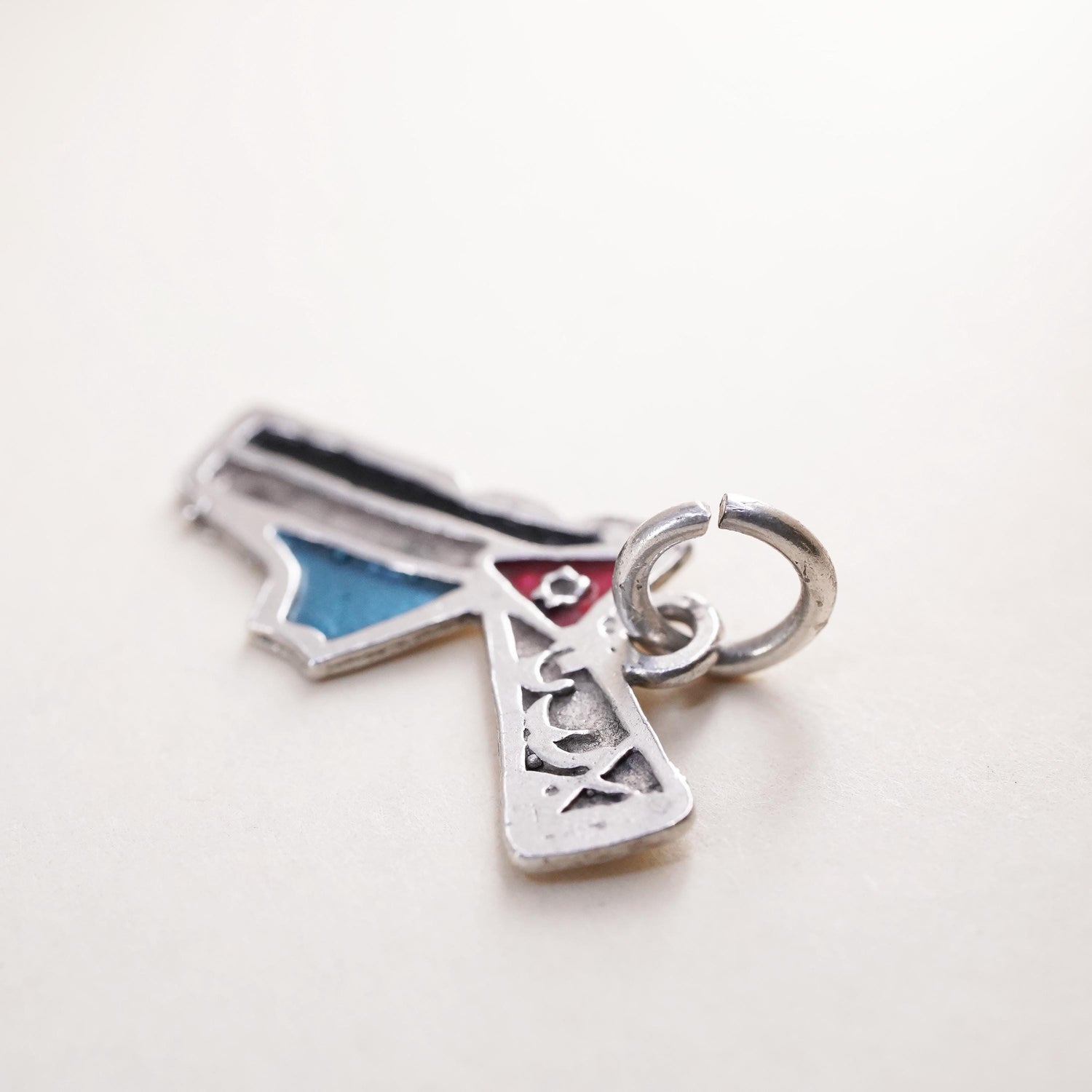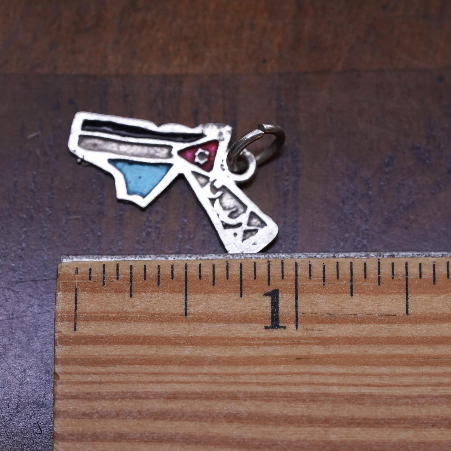 Vintage sterling silver handmade pendant, 925 gun charm with enamel, stamped 925