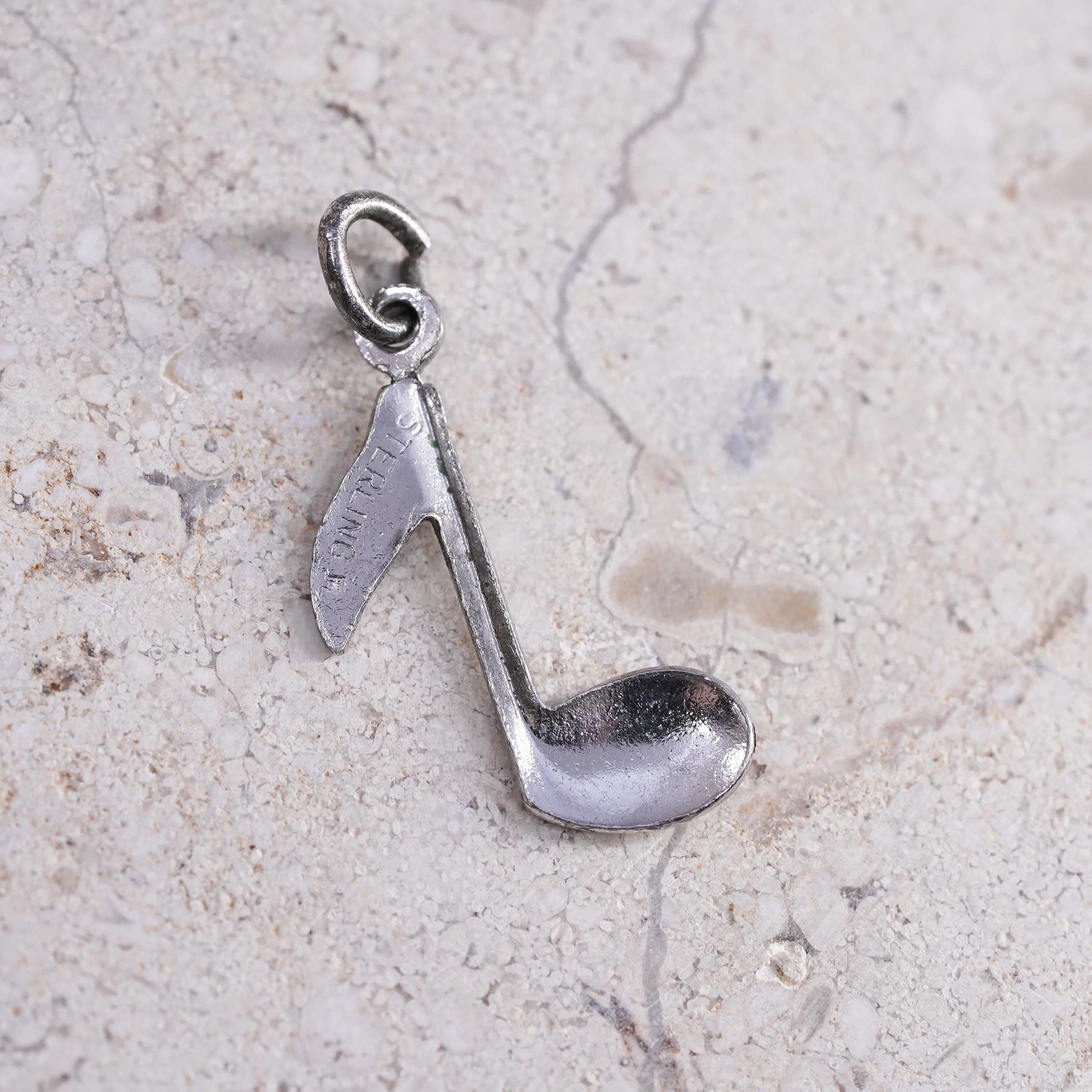 Vintage Sterling silver handmade pendant, 925 music note charm