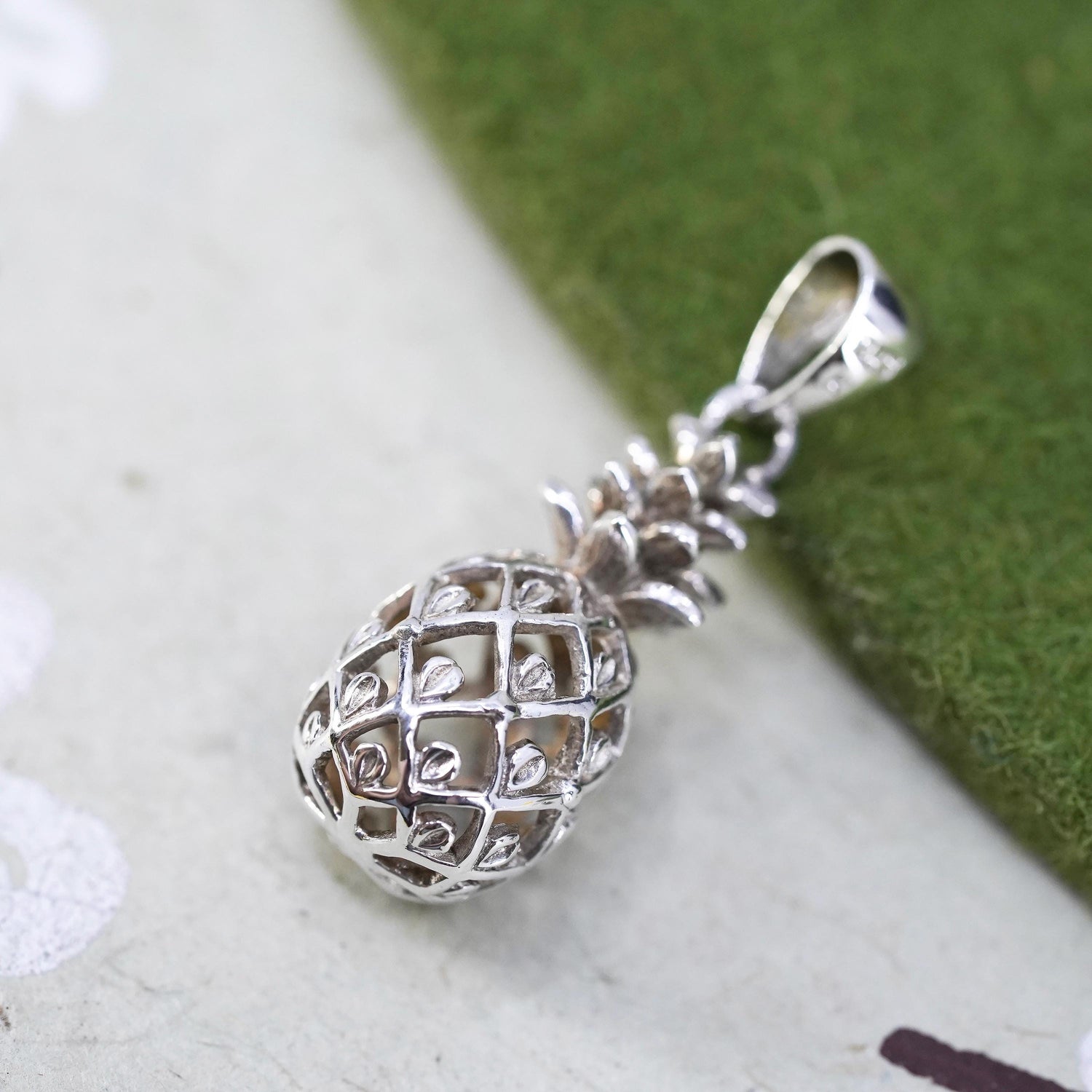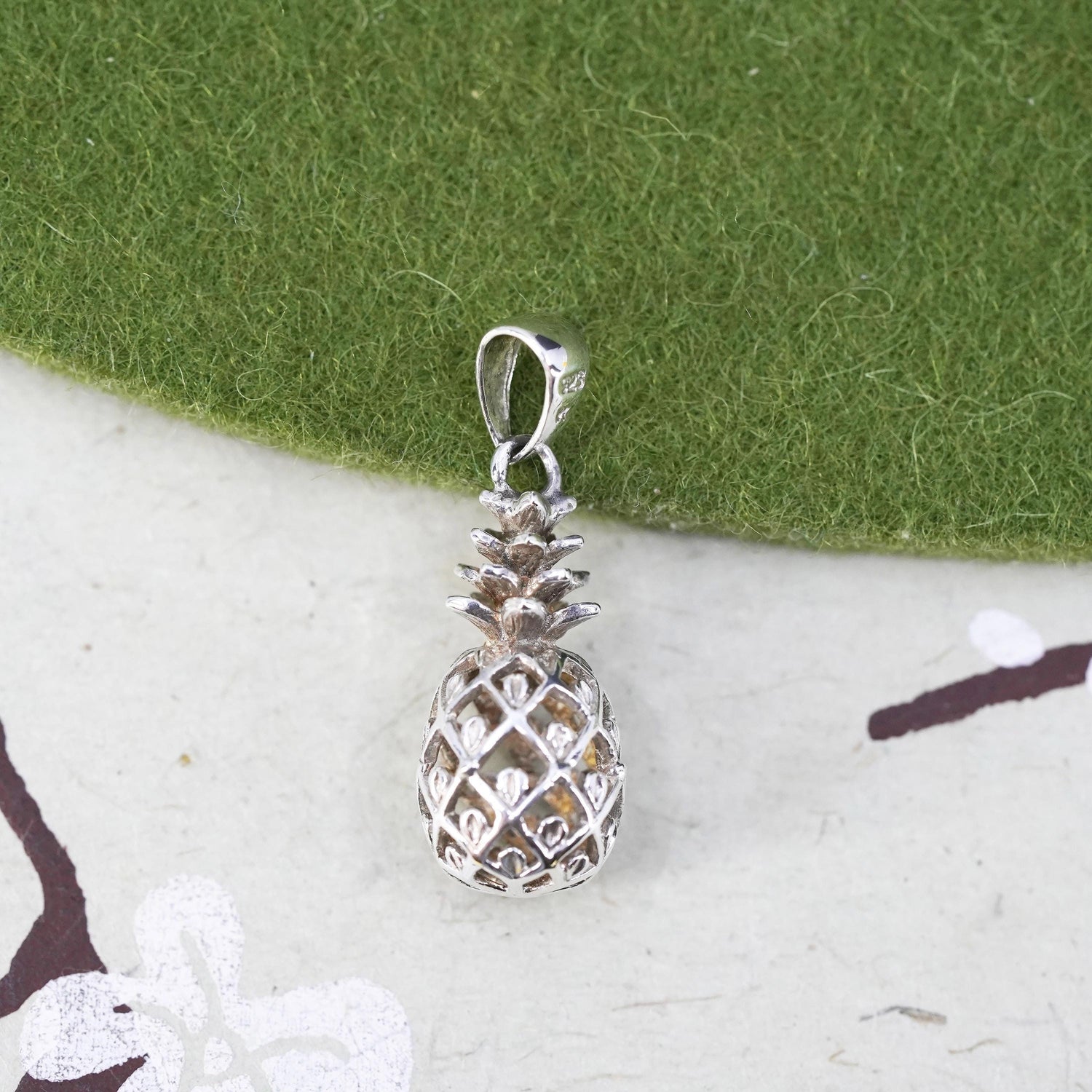 Vintage sterling silver handmade pendant, 925 pineapple charm, stamped 925