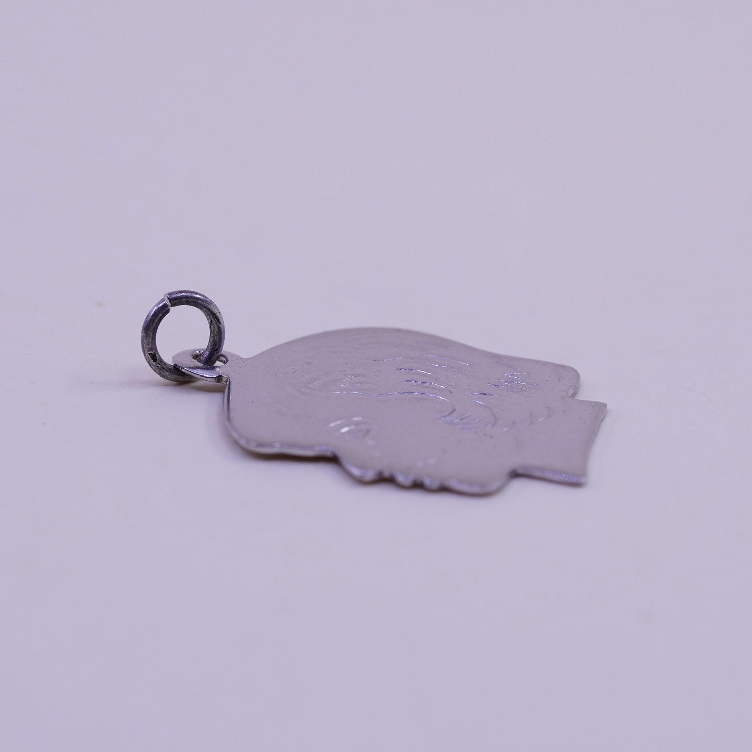 Vintage sterling silver handmade pendant, 925 portrait figure charm