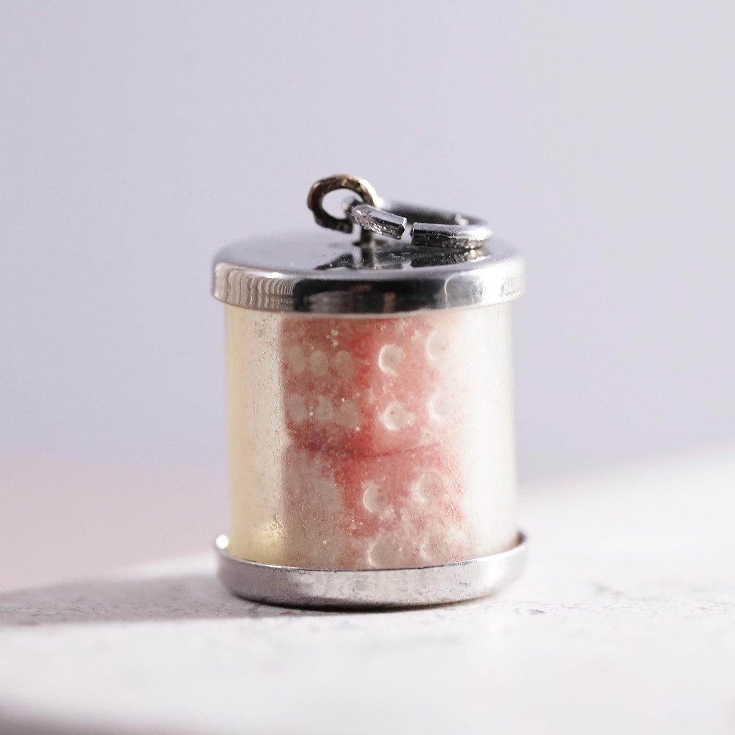Vintage Sterling silver handmade pendant, 925 red dice charm, stamped Ster
