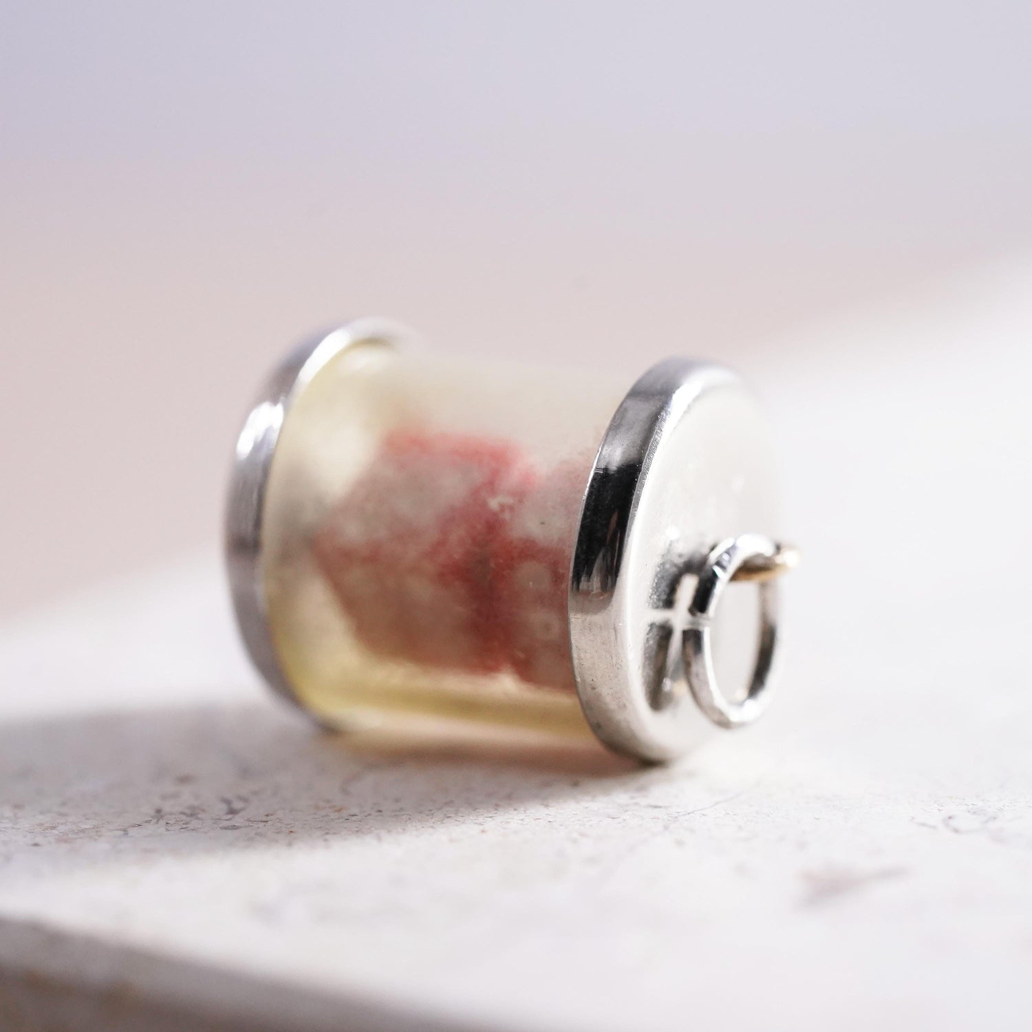 Vintage Sterling silver handmade pendant, 925 red dice charm