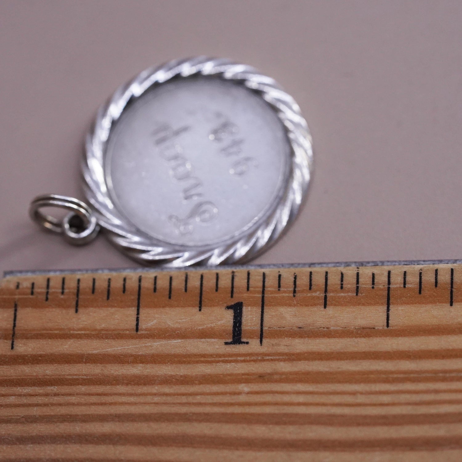 Vintage sterling silver handmade pendant, 925 tag charm engraved Troop 943
