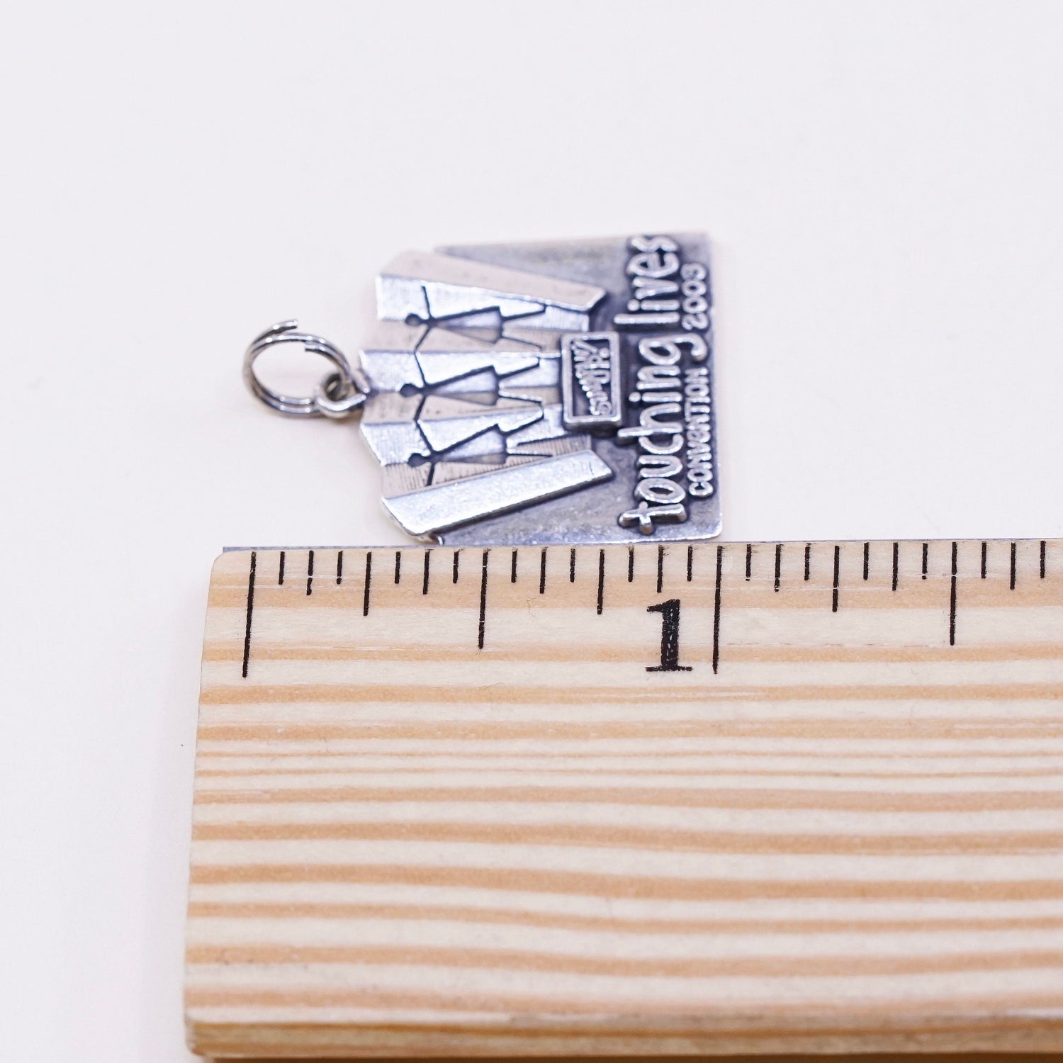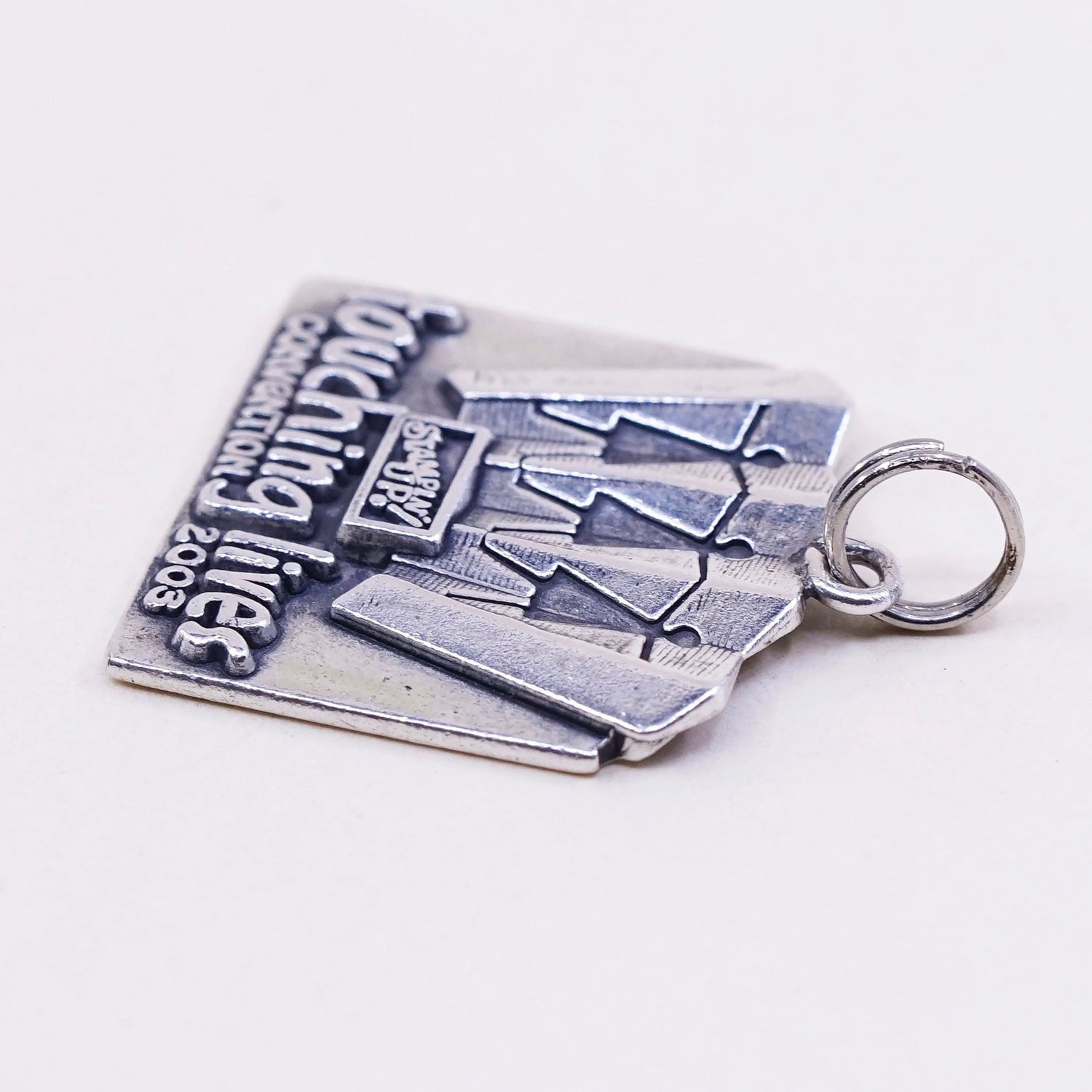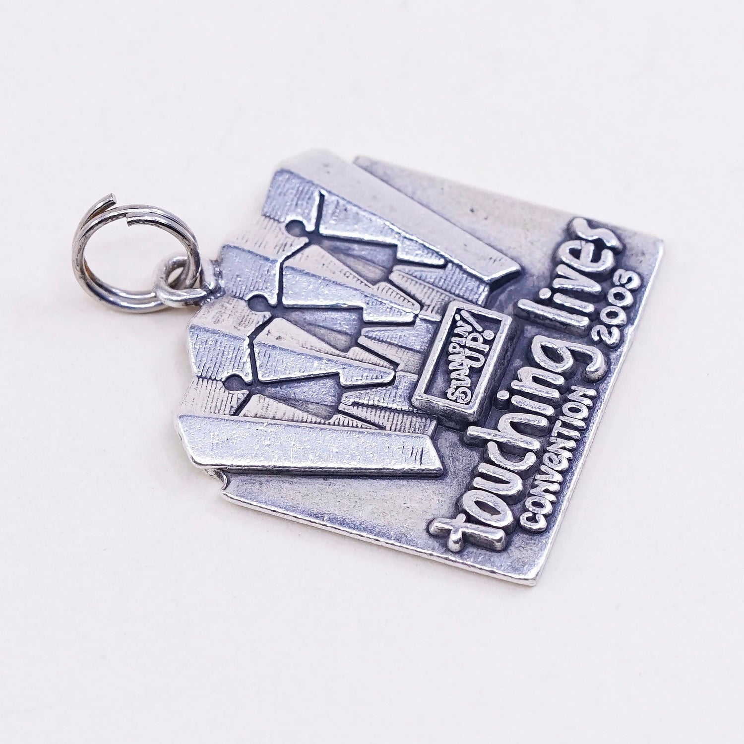 Vintage sterling silver handmade pendant, 925 tag charm with “touching lives”