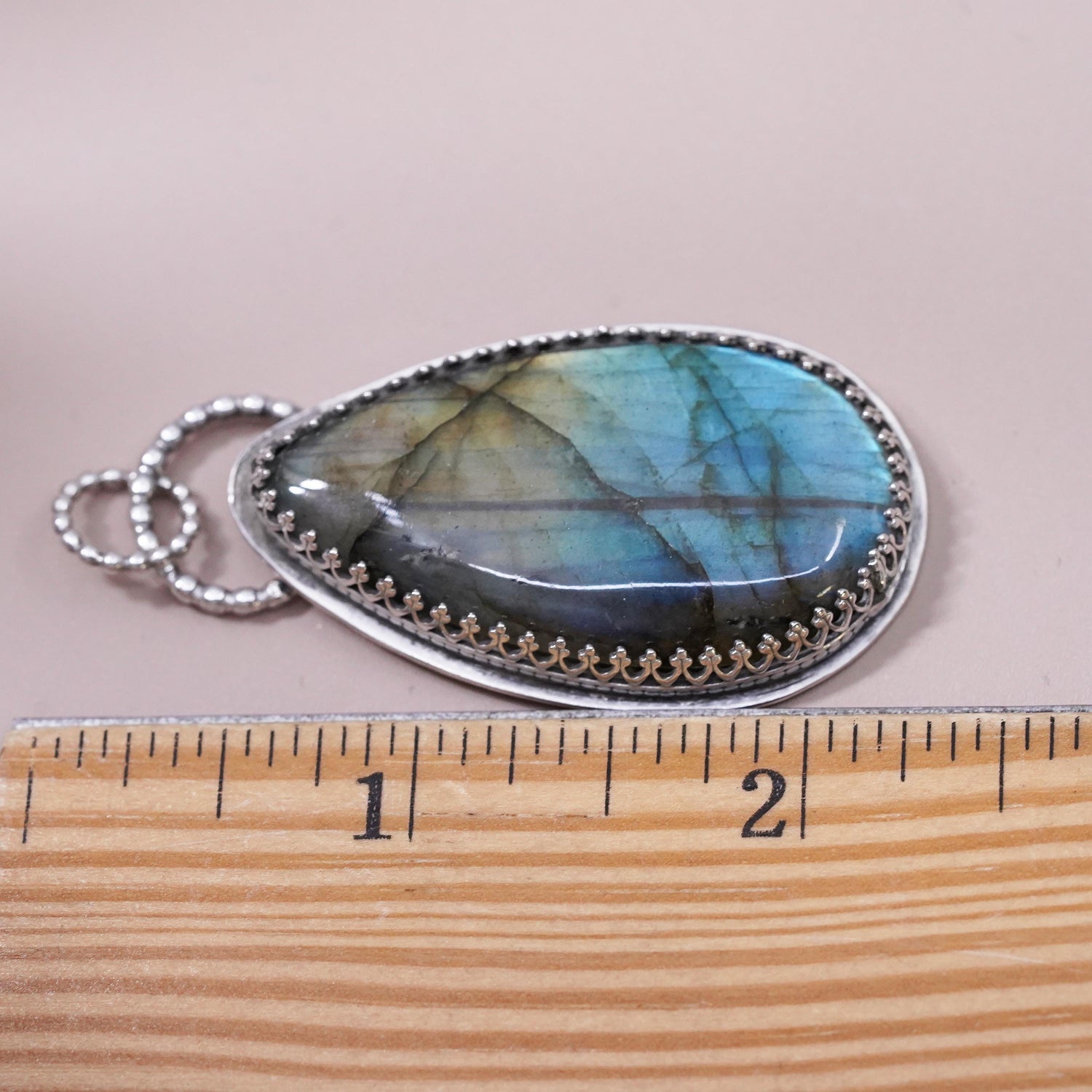 Vintage Sterling silver handmade pendant, 925 teardrop with labradorite