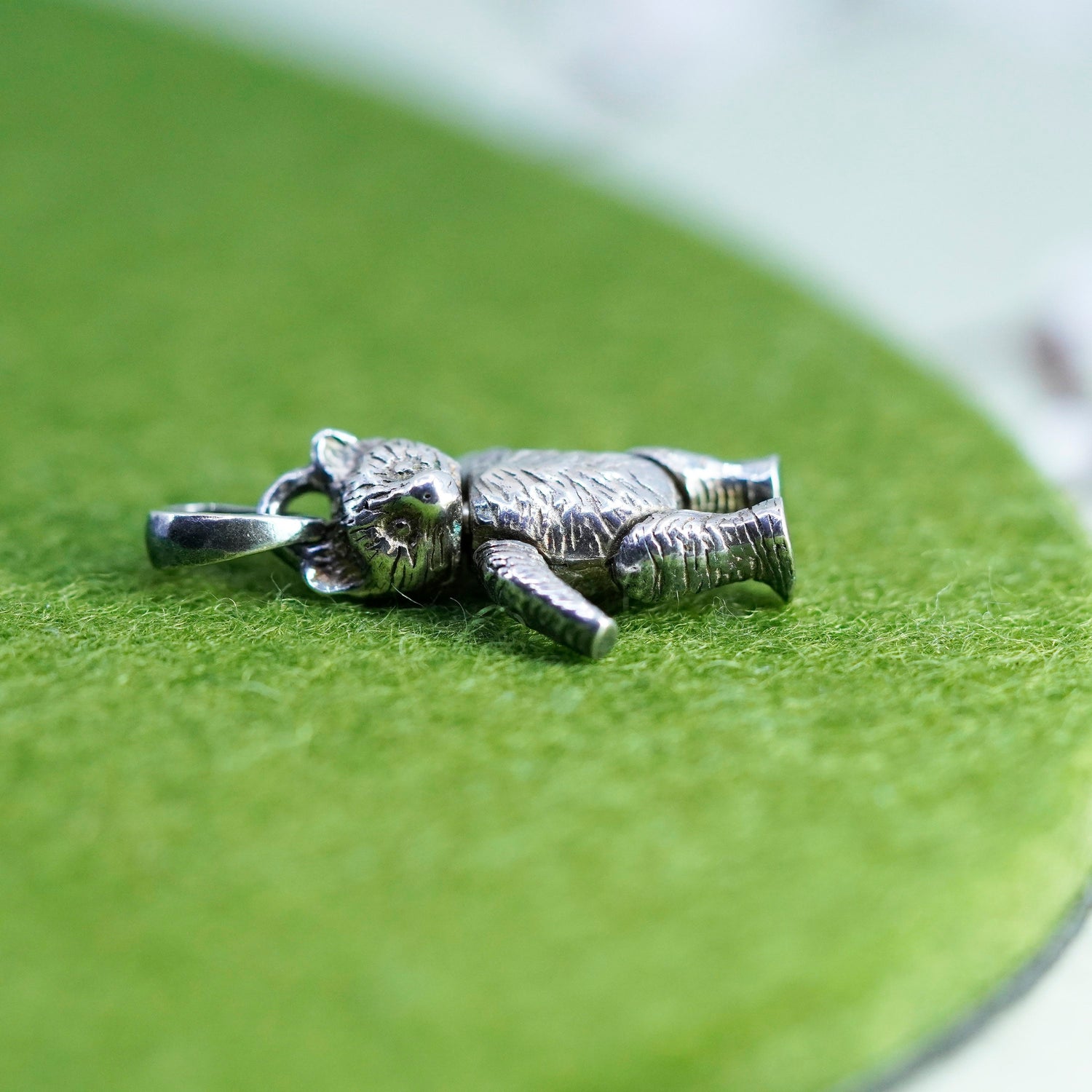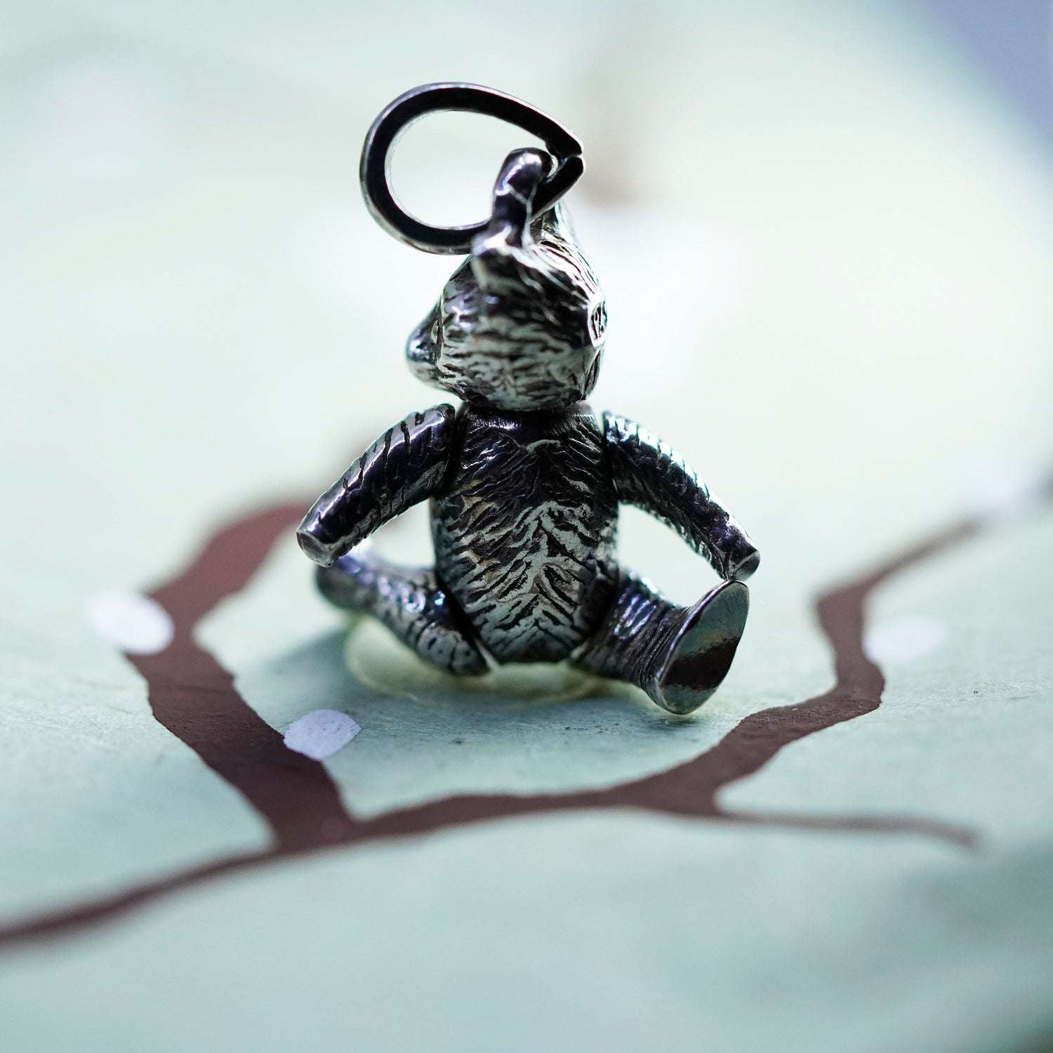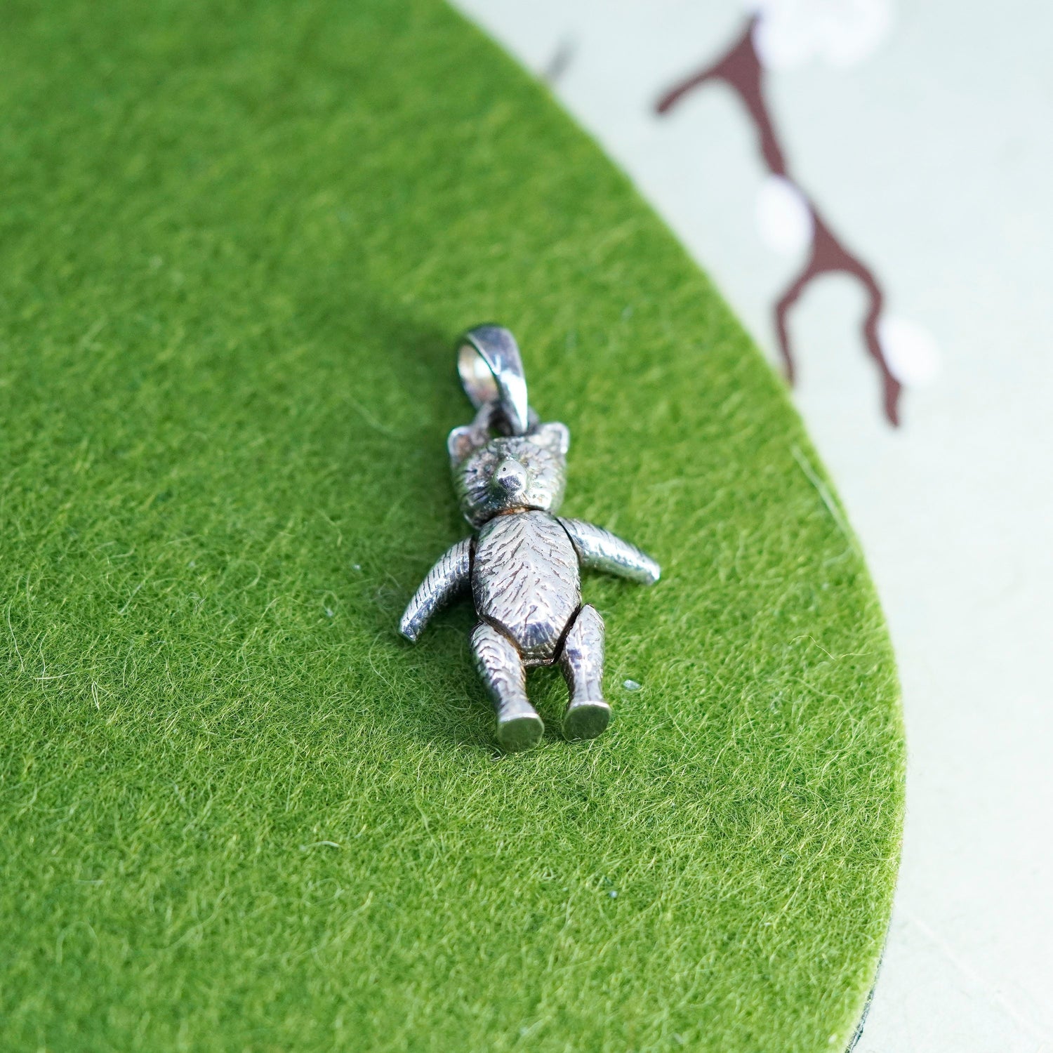 vintage Sterling silver handmade pendant, 925 teddy bear with movable joints, stamped 925