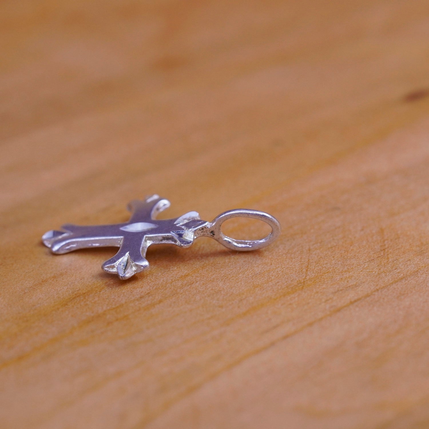 Vintage Sterling silver handmade pendant, 925 textured cross, stamped 925