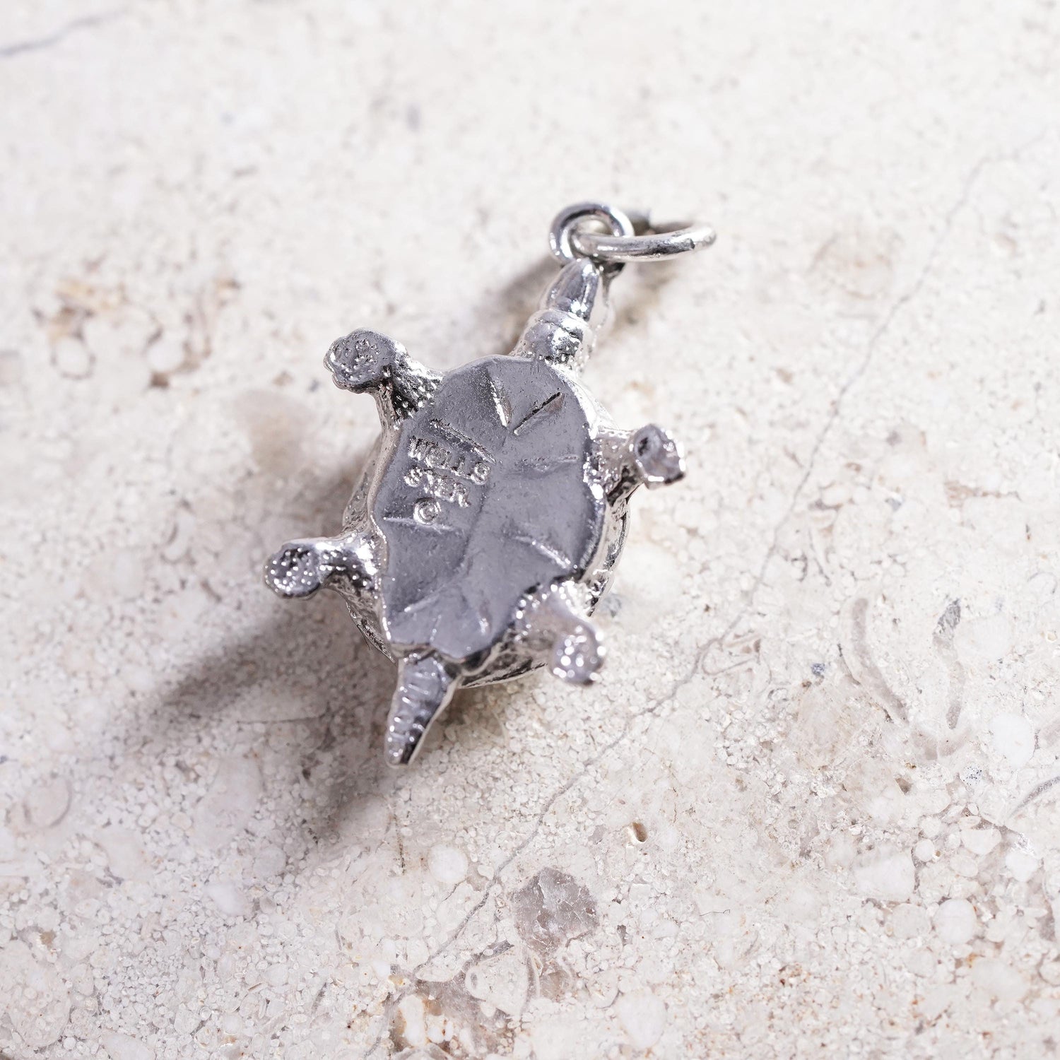 Vintage Sterling silver handmade pendant, 925 turtle charm, stamped sterling Wells