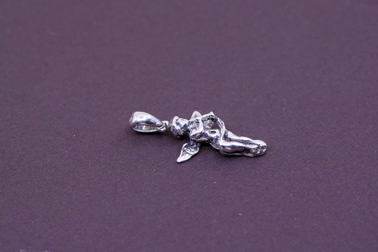 Vintage Sterling silver handmade pendant, Italy 925 angel with trumpet charm, stamped 925