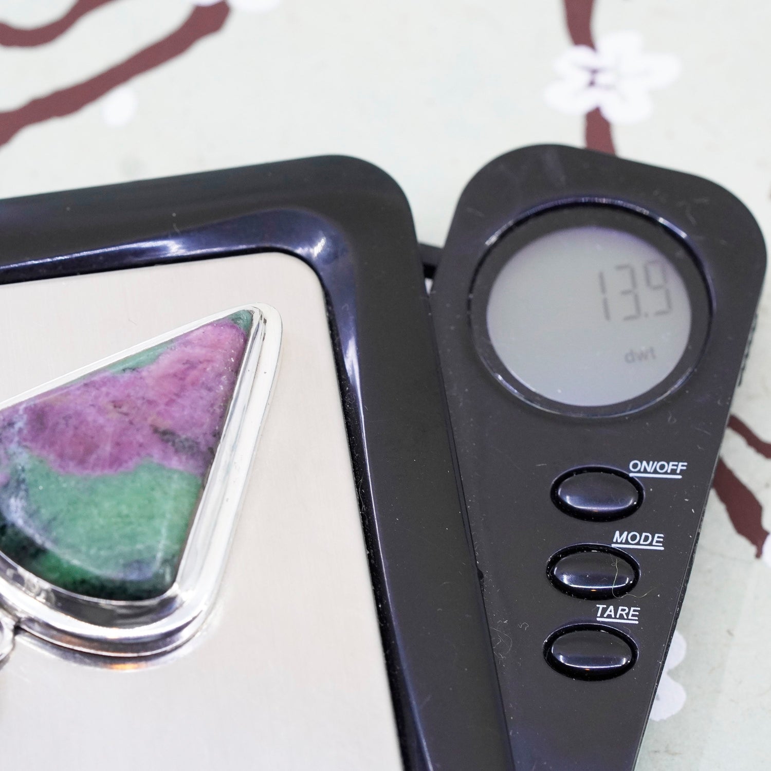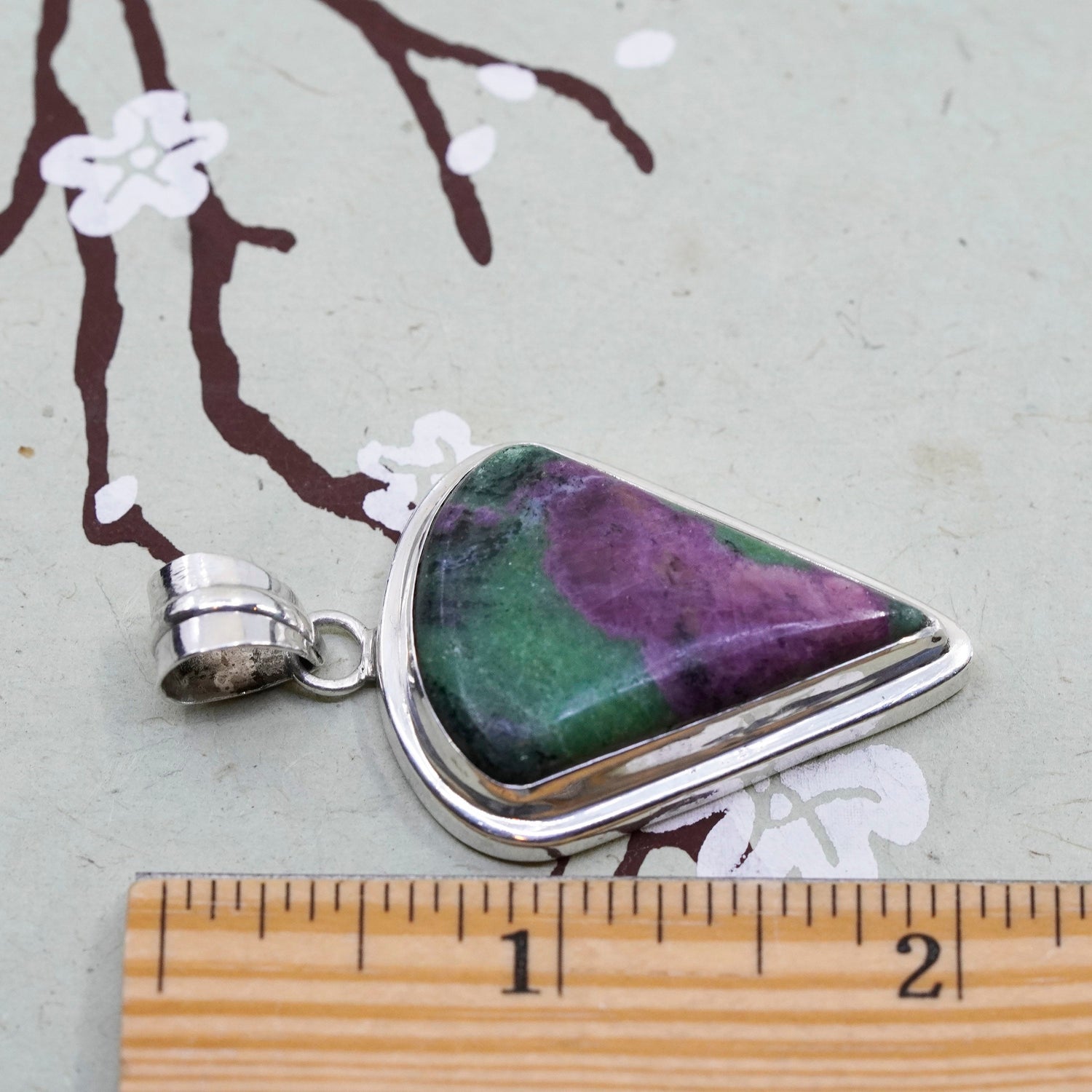 Vintage sterling silver handmade pendant, Mexican 925 teardrop w/ ruby zoisite