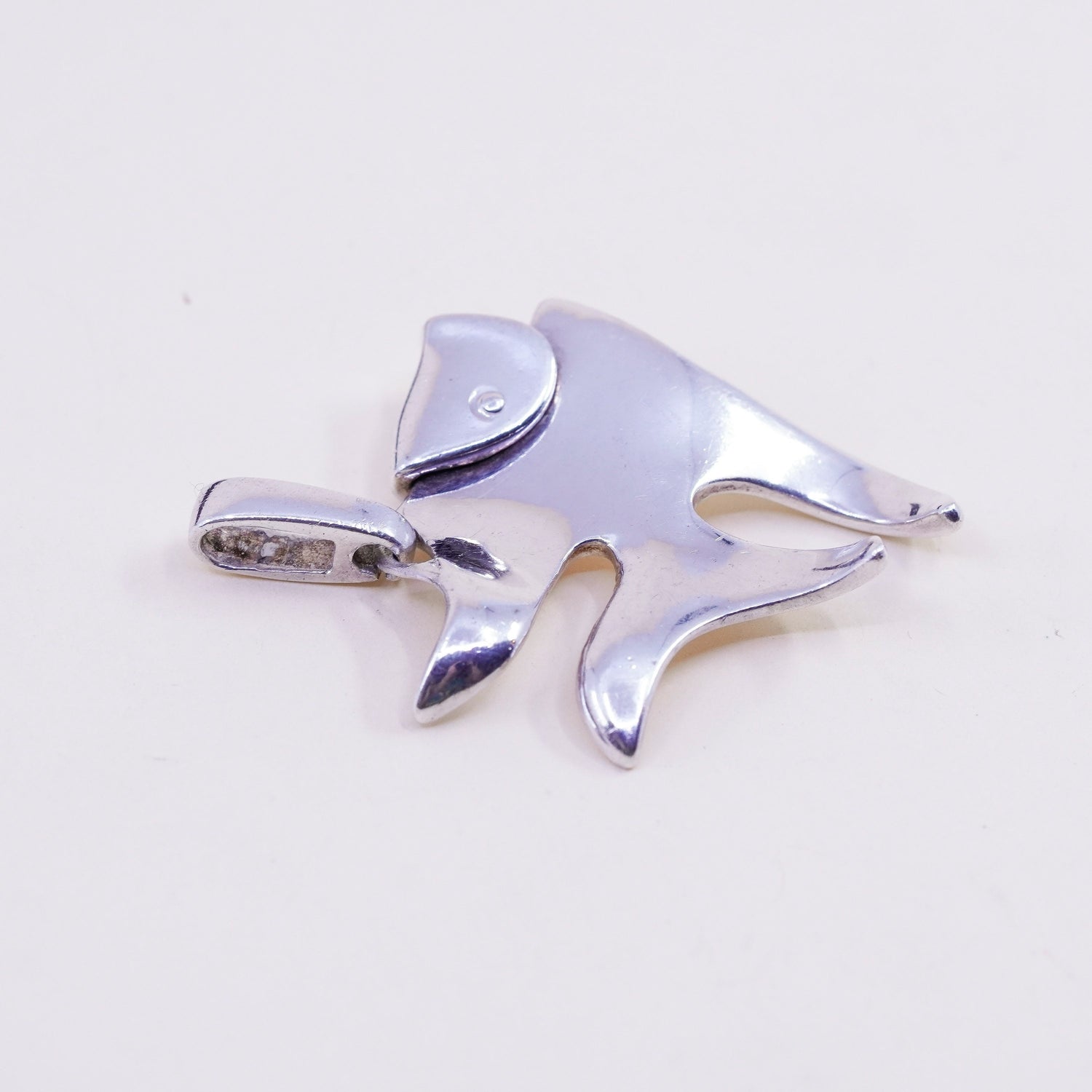 Vintage sterling silver handmade pendant, modern simple 925 fish, stamped 925 Italy