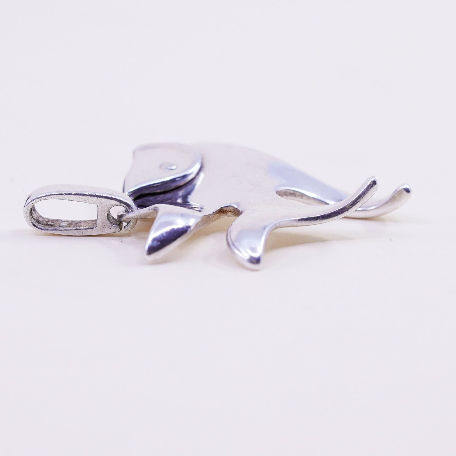 Vintage sterling silver handmade pendant, modern simple 925 fish