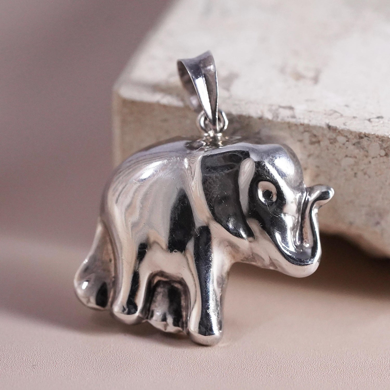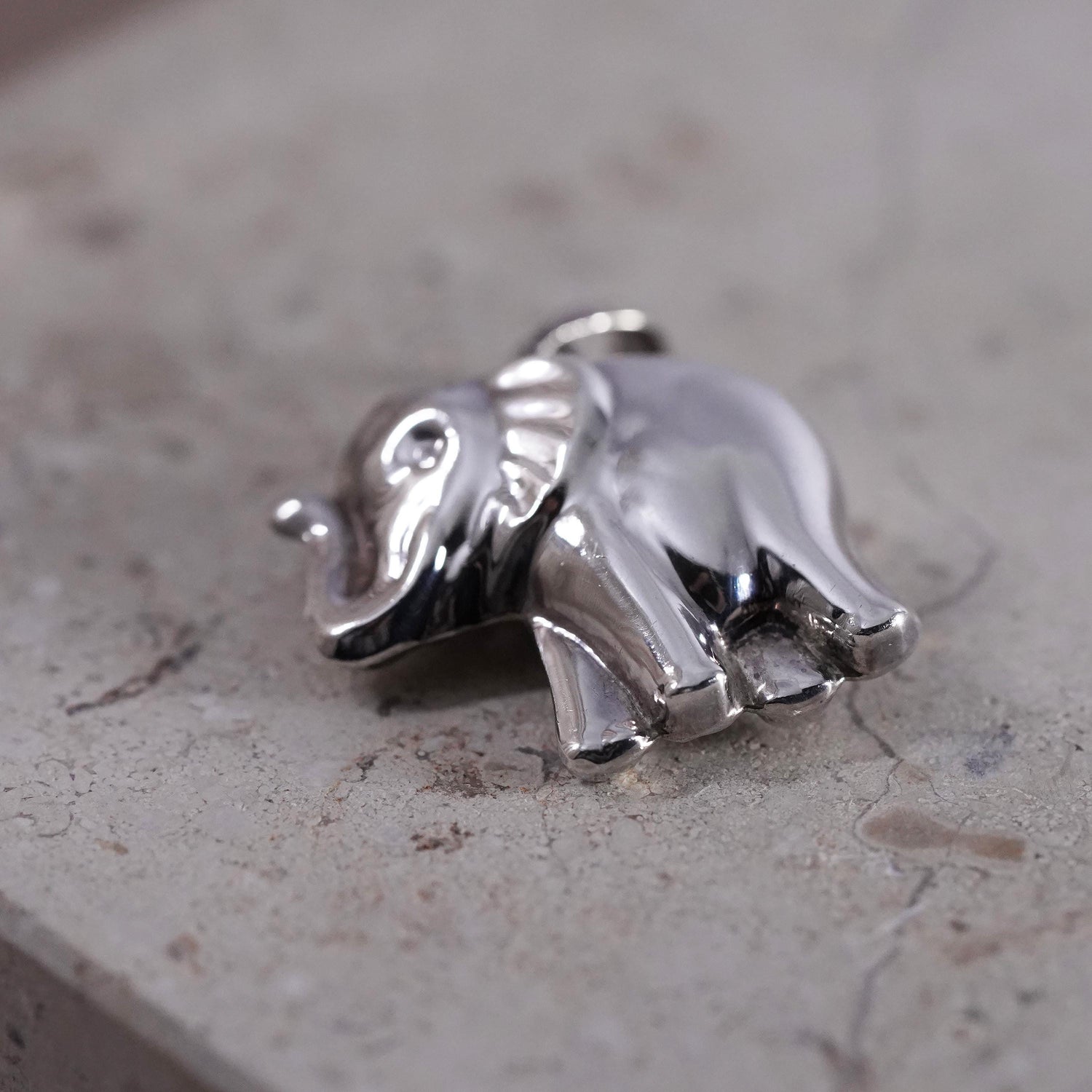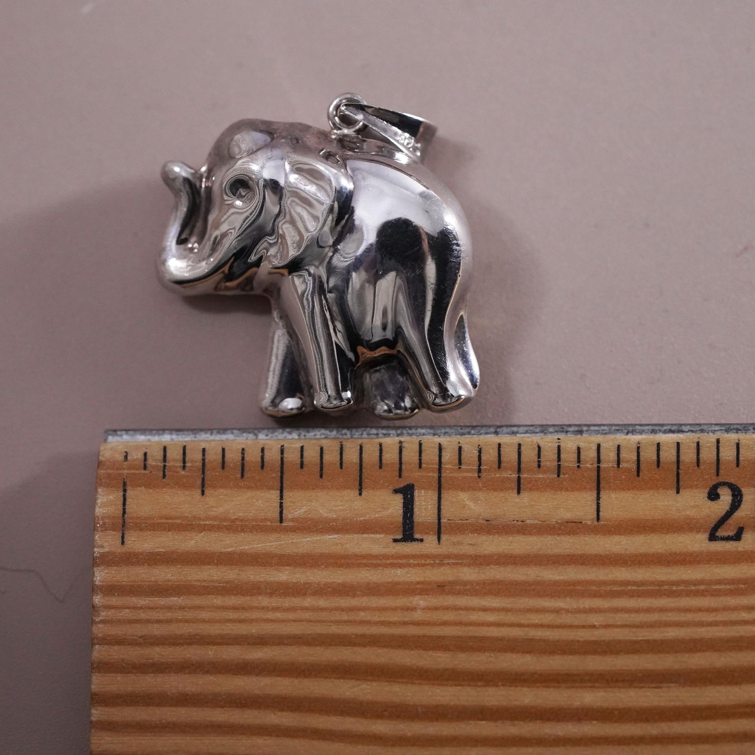Vintage Sterling silver handmade pendant, puffy 925 silver elephant charm, stamped 925