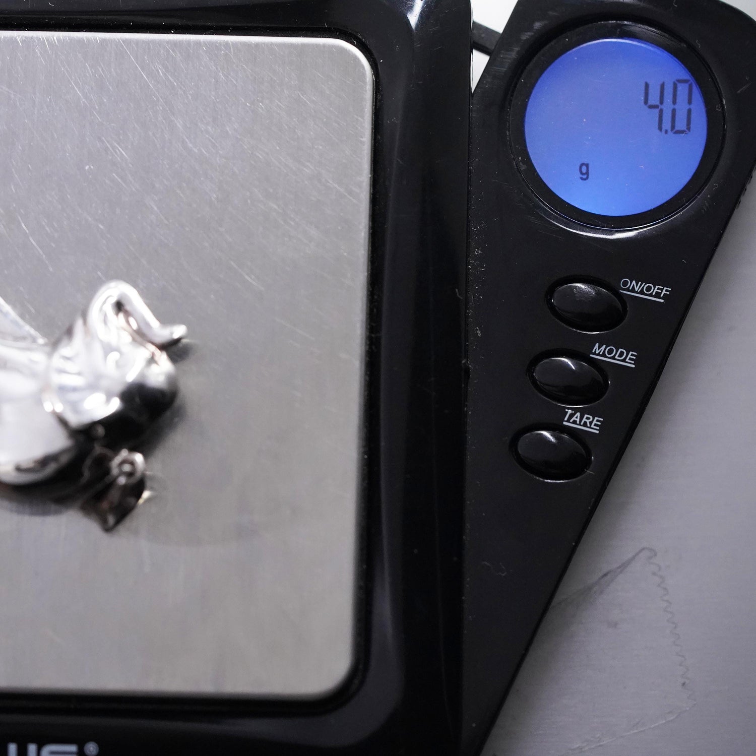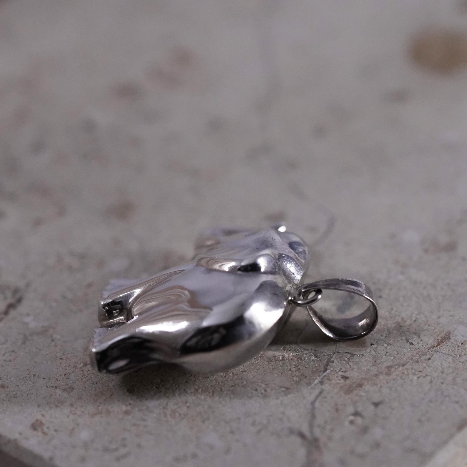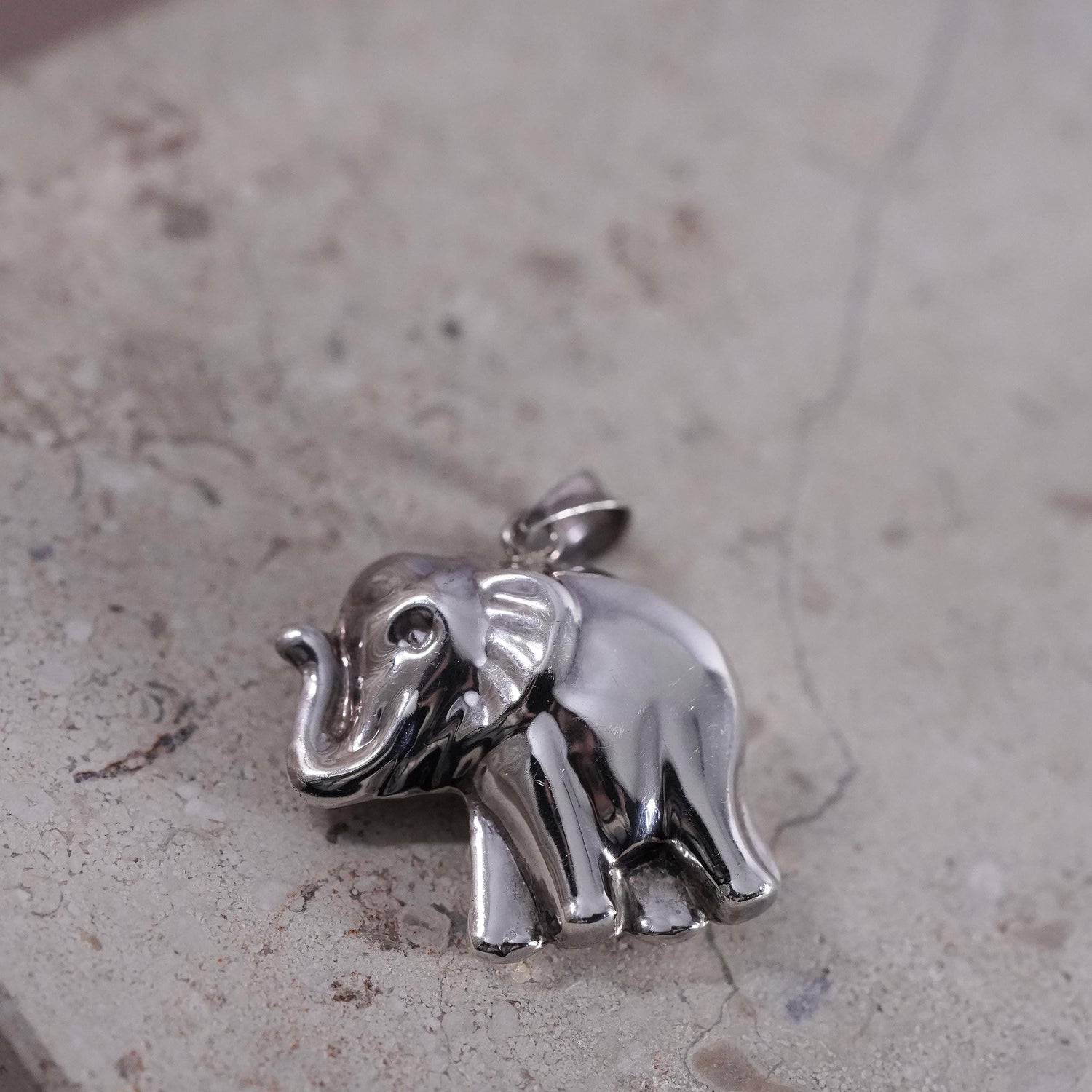 Vintage Sterling silver handmade pendant, puffy 925 silver elephant charm, stamped 925