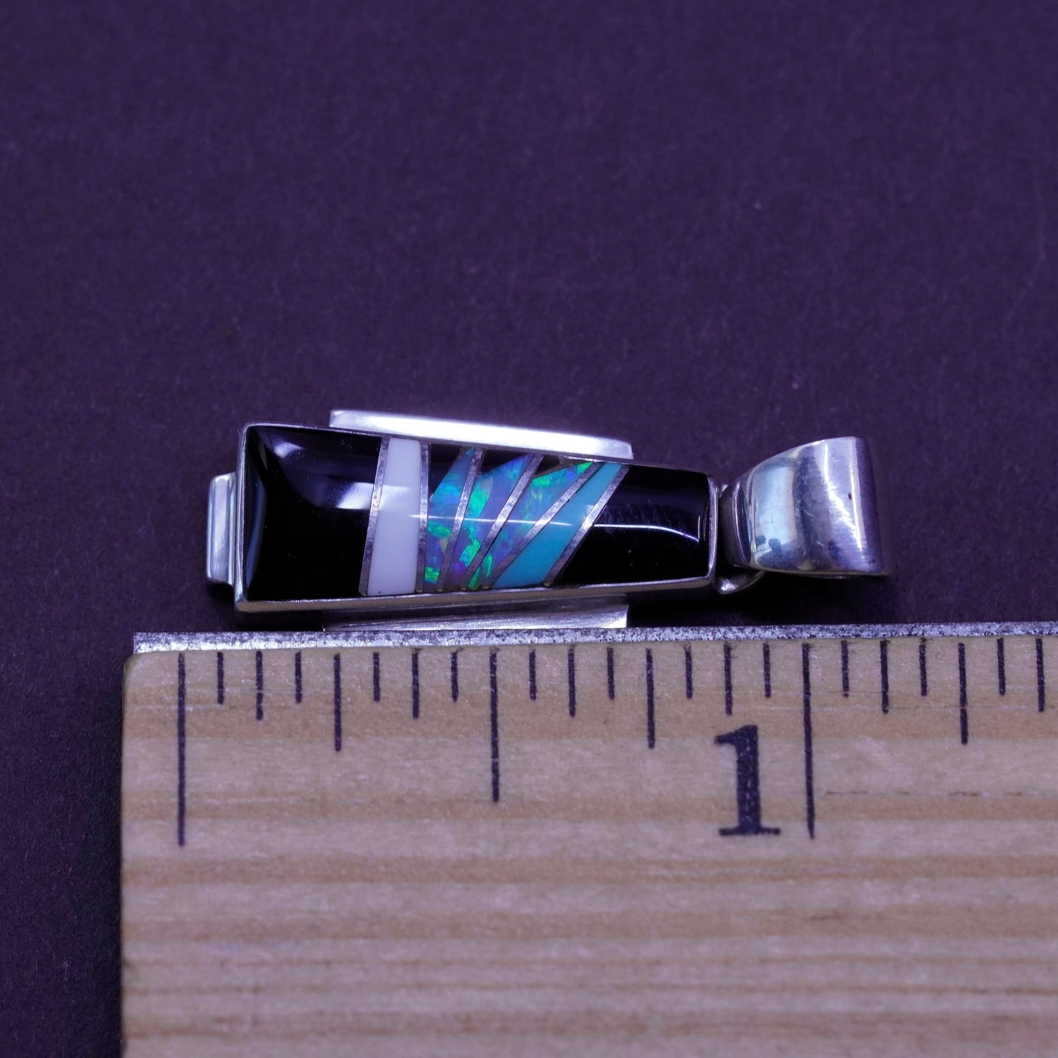 Vintage Sterling silver handmade, zuni 925 slide pendant with opal inlay, elegant, simple, stamped Sterling USA