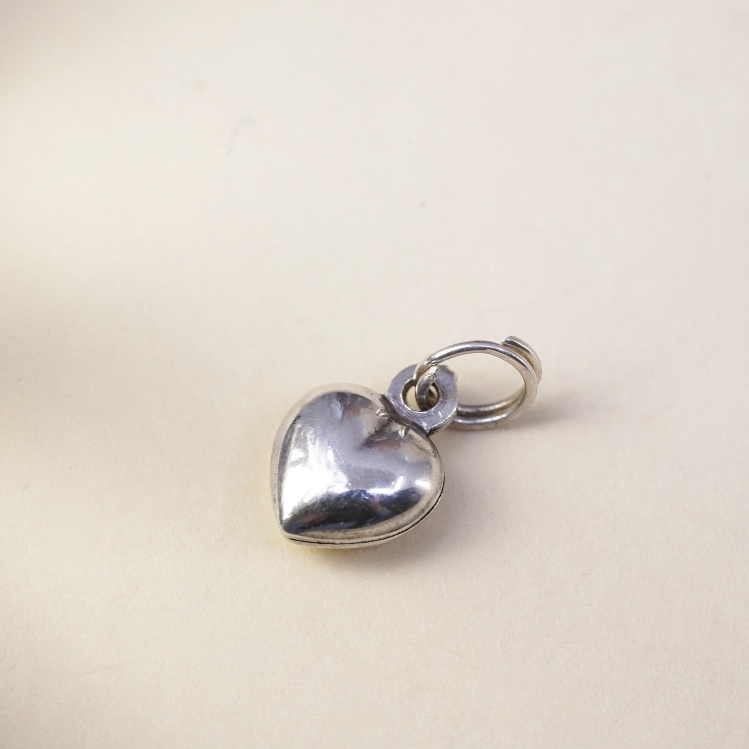 Vintage sterling silver heart tag charm, 925 pendant, stamped 925