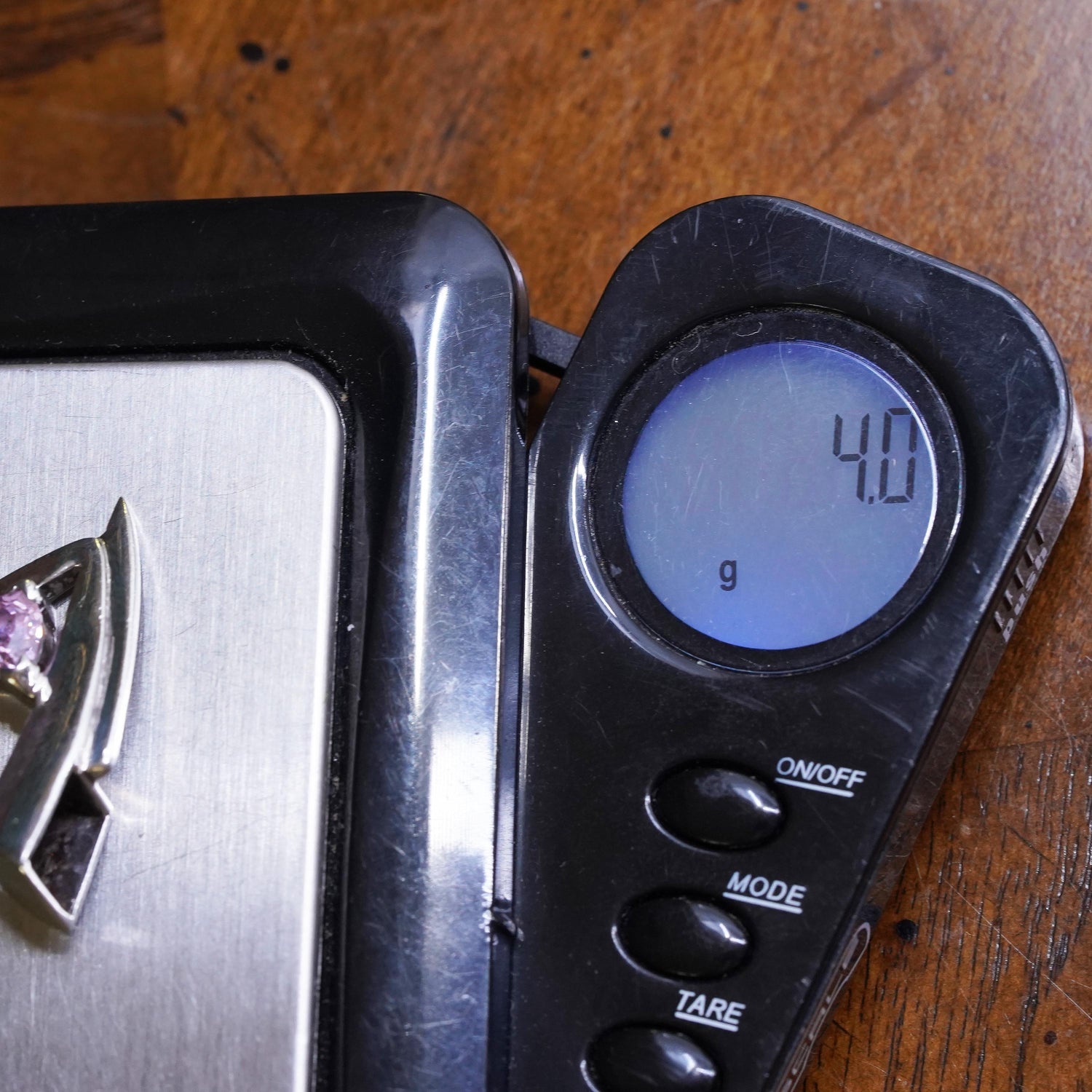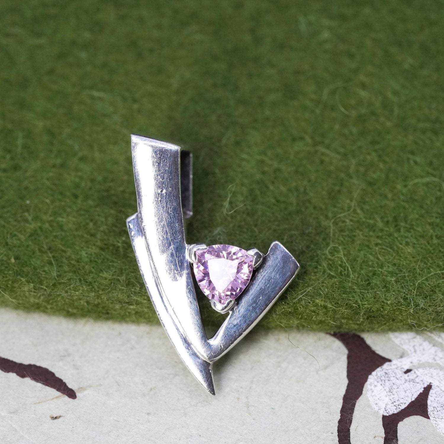 Vintage sterling silver modern pendant, 925 charm with pink crystal