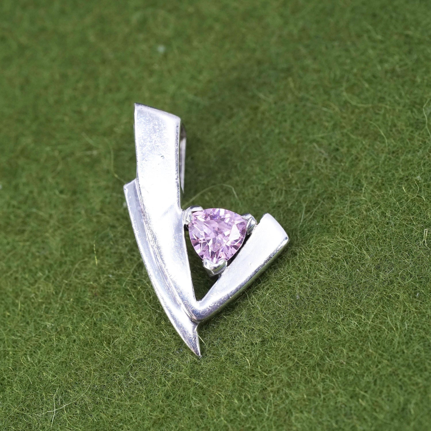 Vintage sterling silver modern pendant, 925 charm with pink crystal, stamped 925