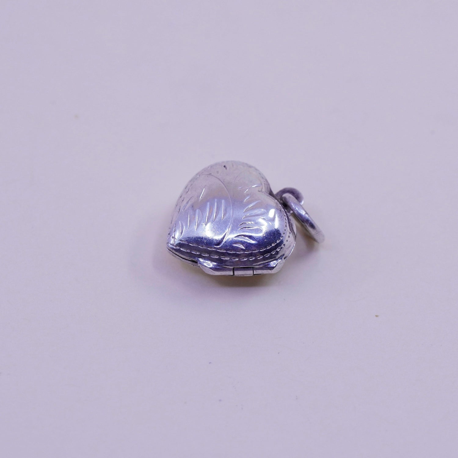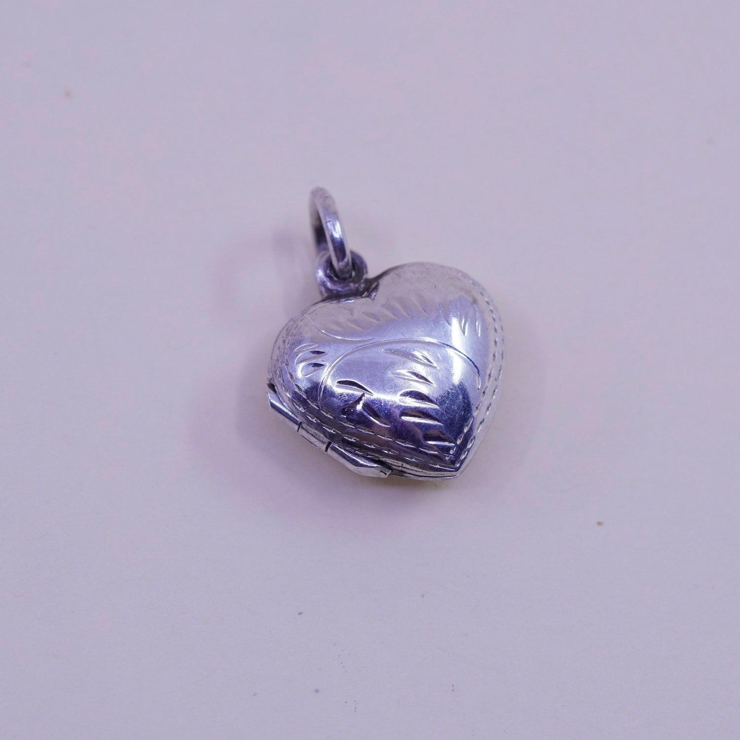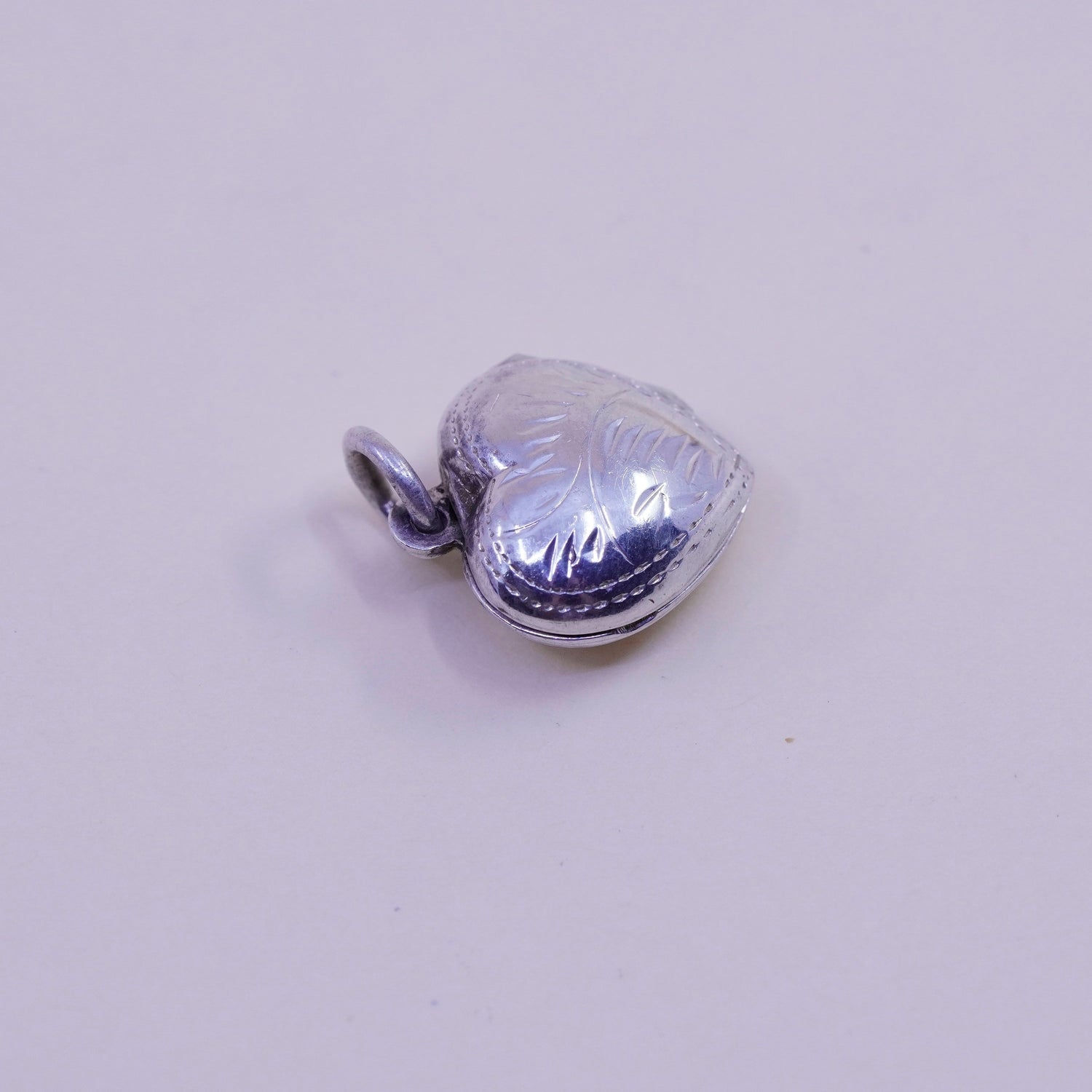 Vintage Sterling silver pendant, 925 textured handmade heart photo locket charm, stamped 925