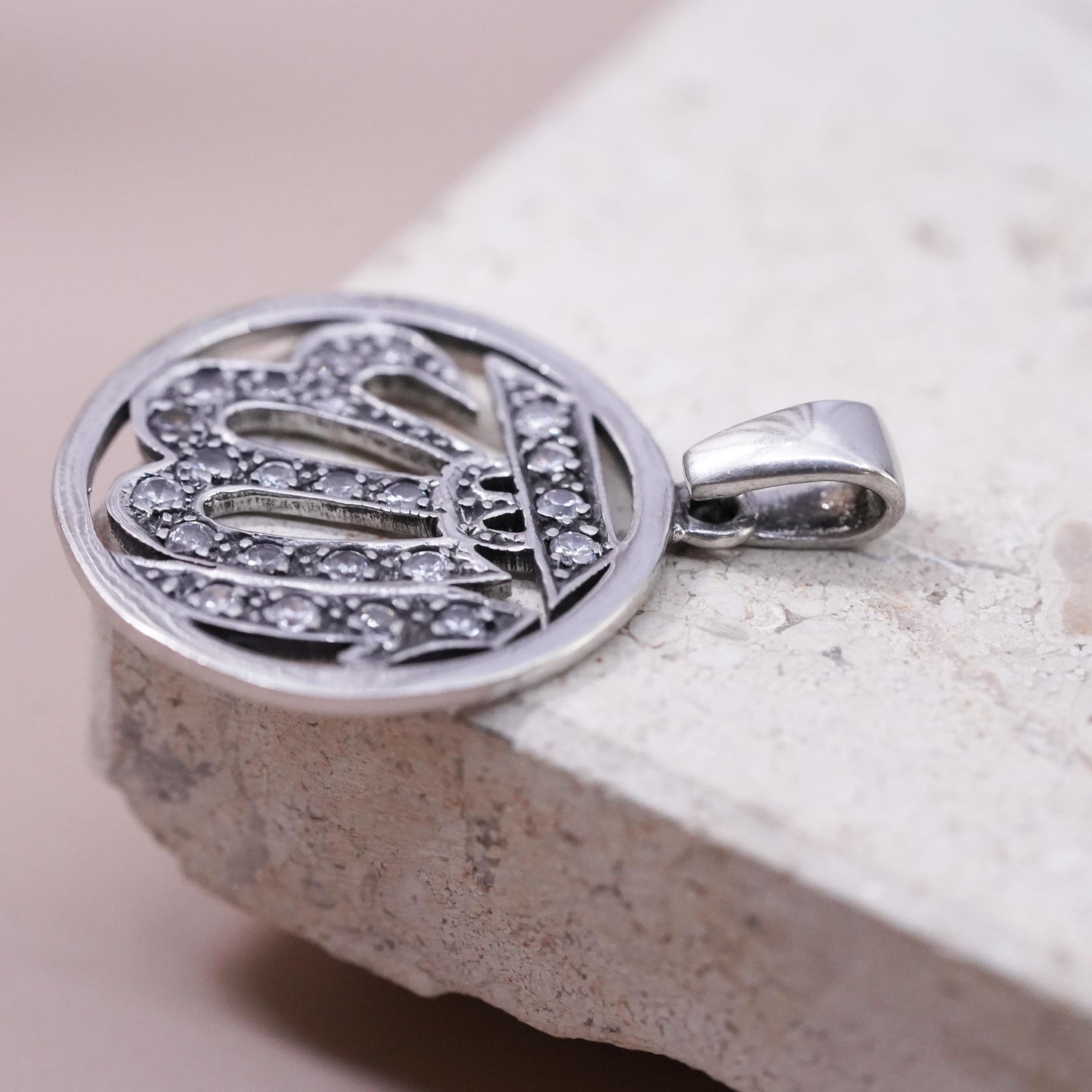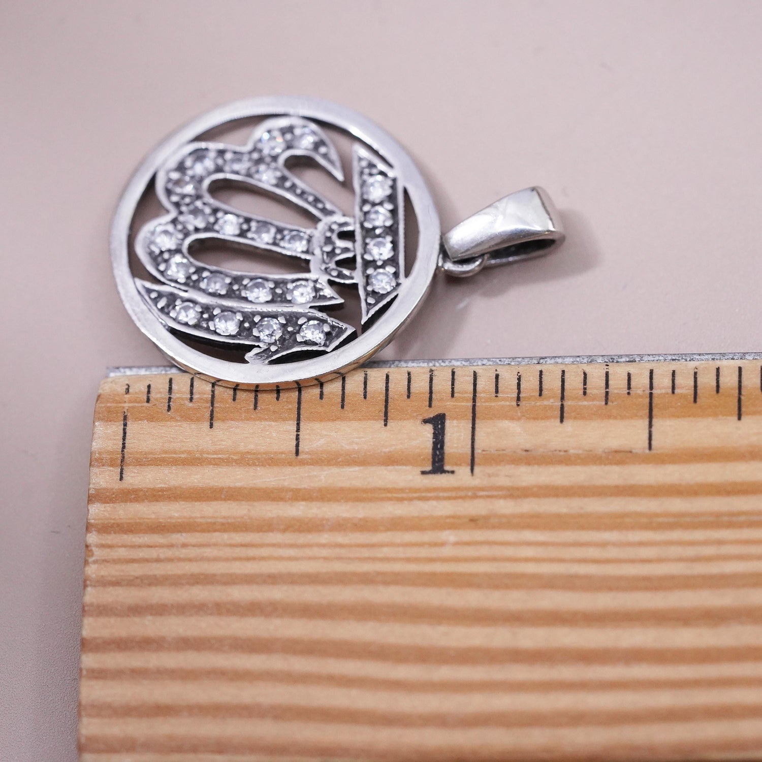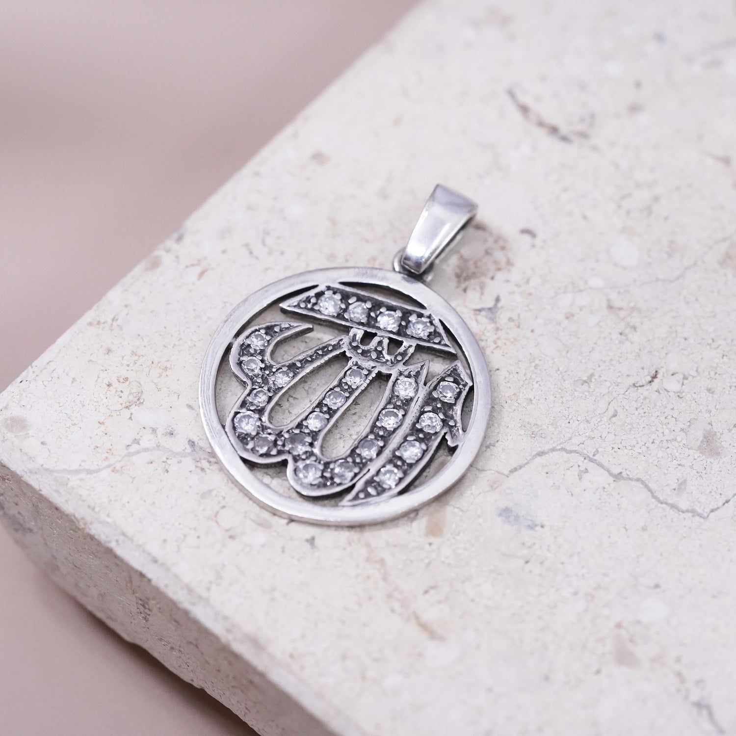 Vintage sterling silver religious symbol charm, 925 initial "WI” pendant with cz