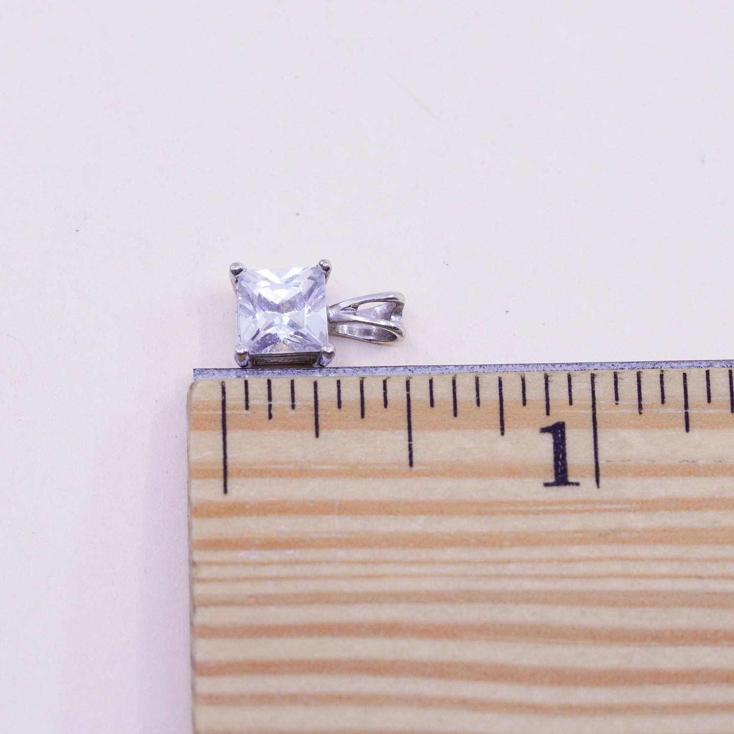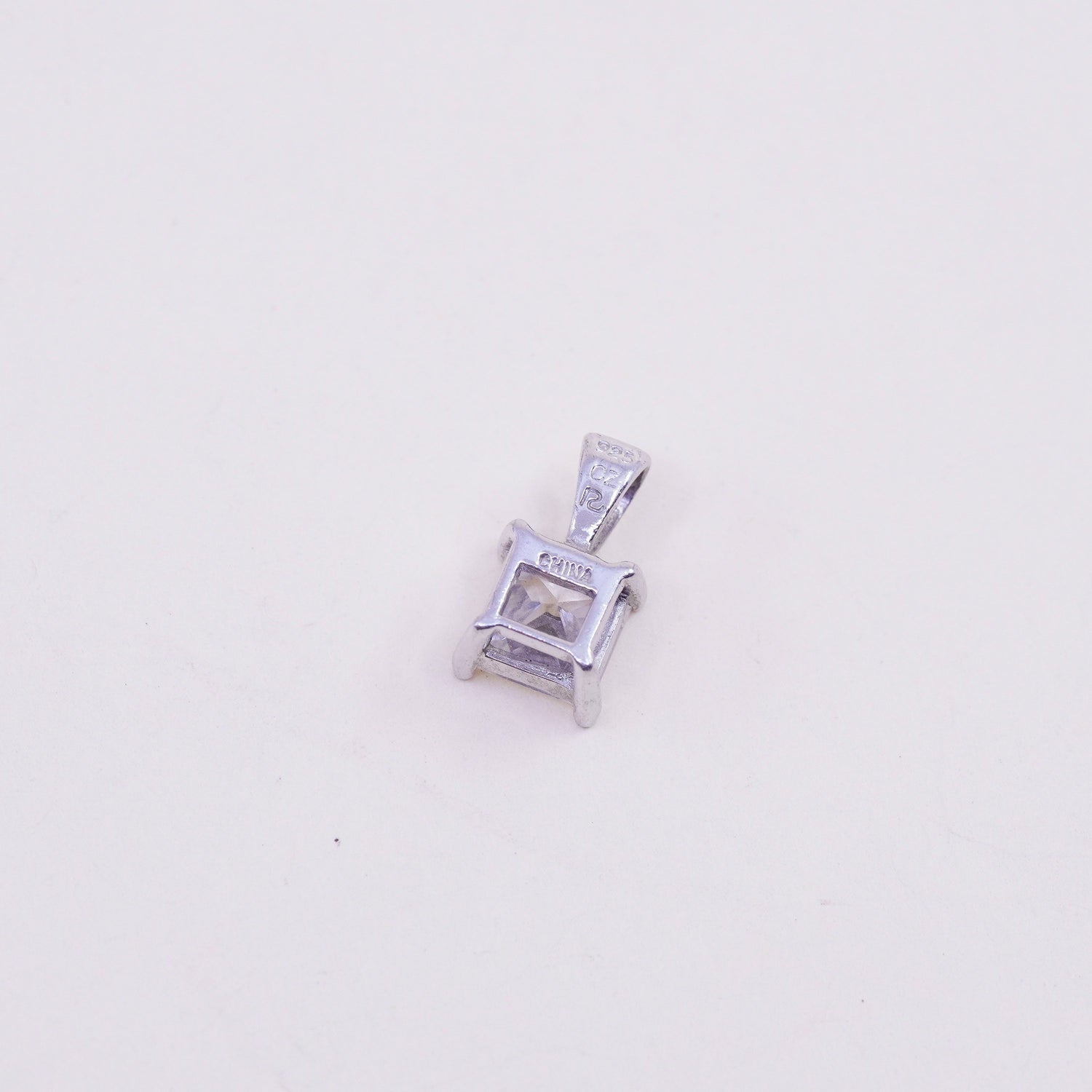 Vintage sterling silver square cz pendant, 925 charm, stamped 925