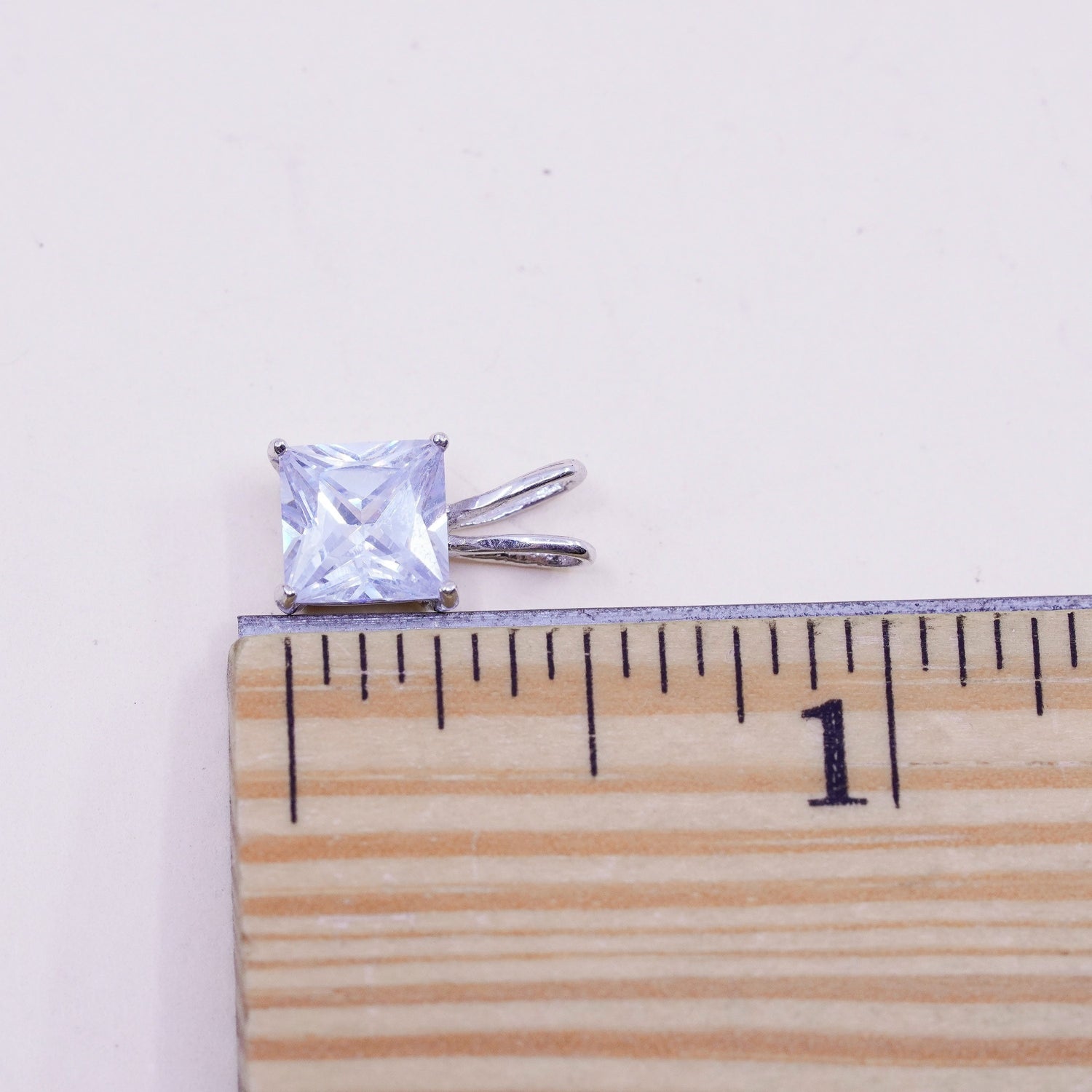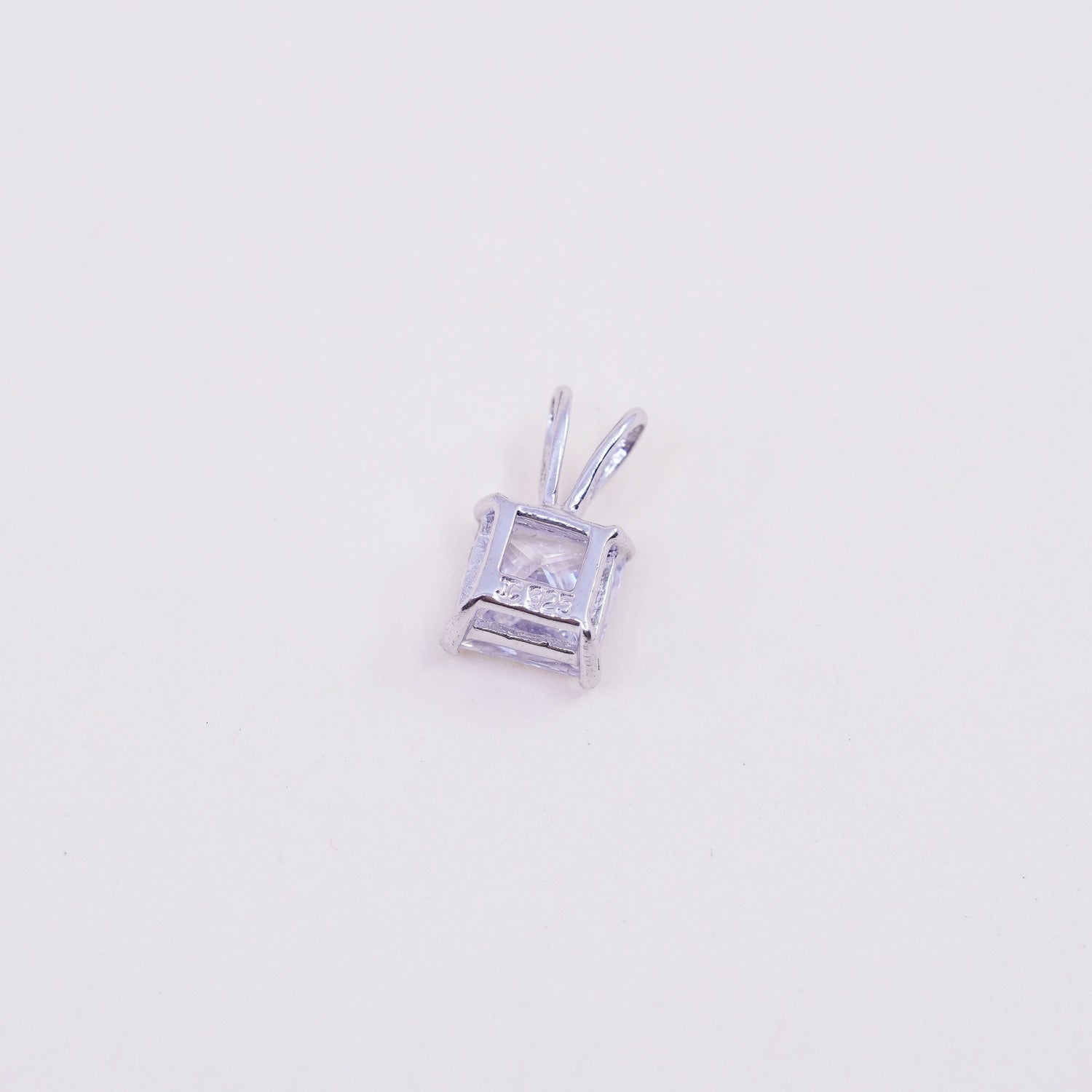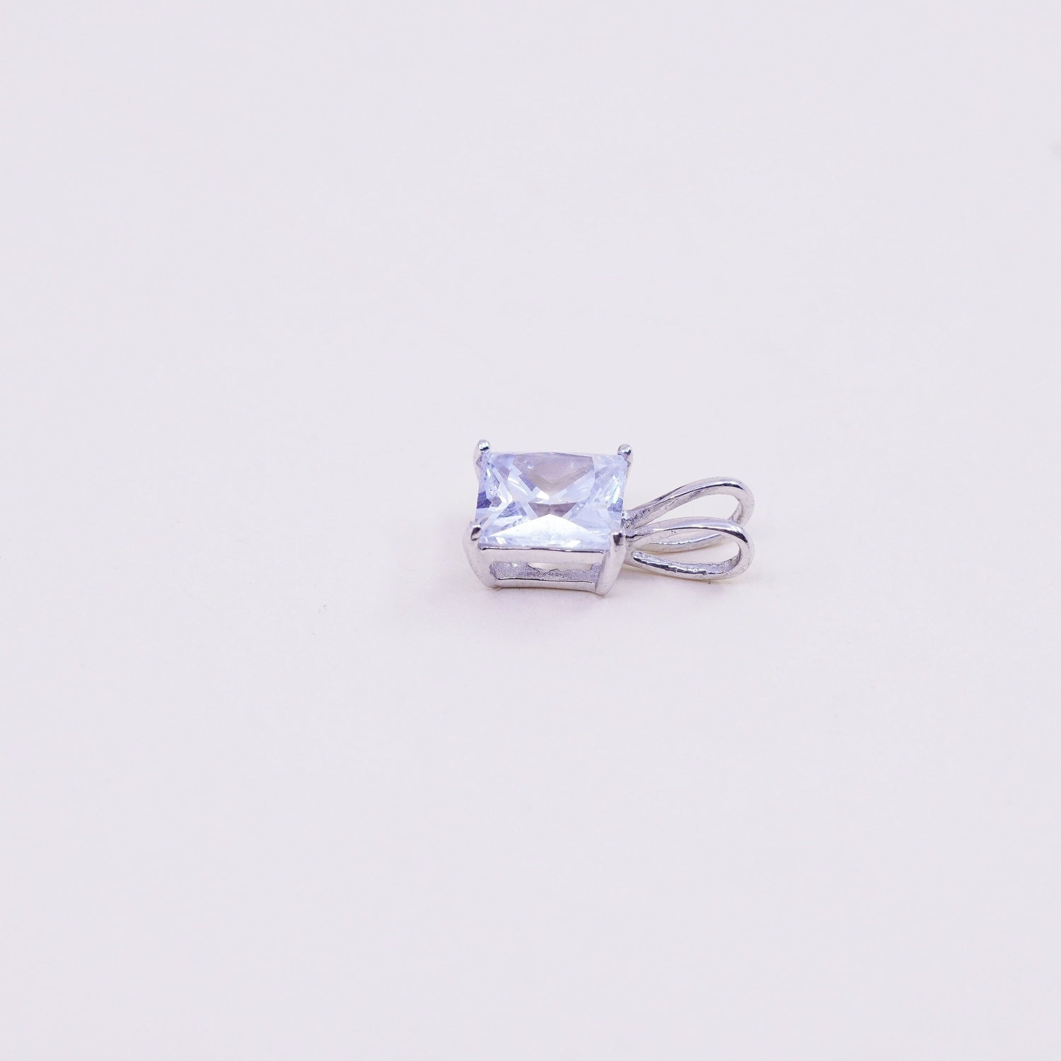 Vintage sterling silver square cz pendant, 925 charm, stamped 925