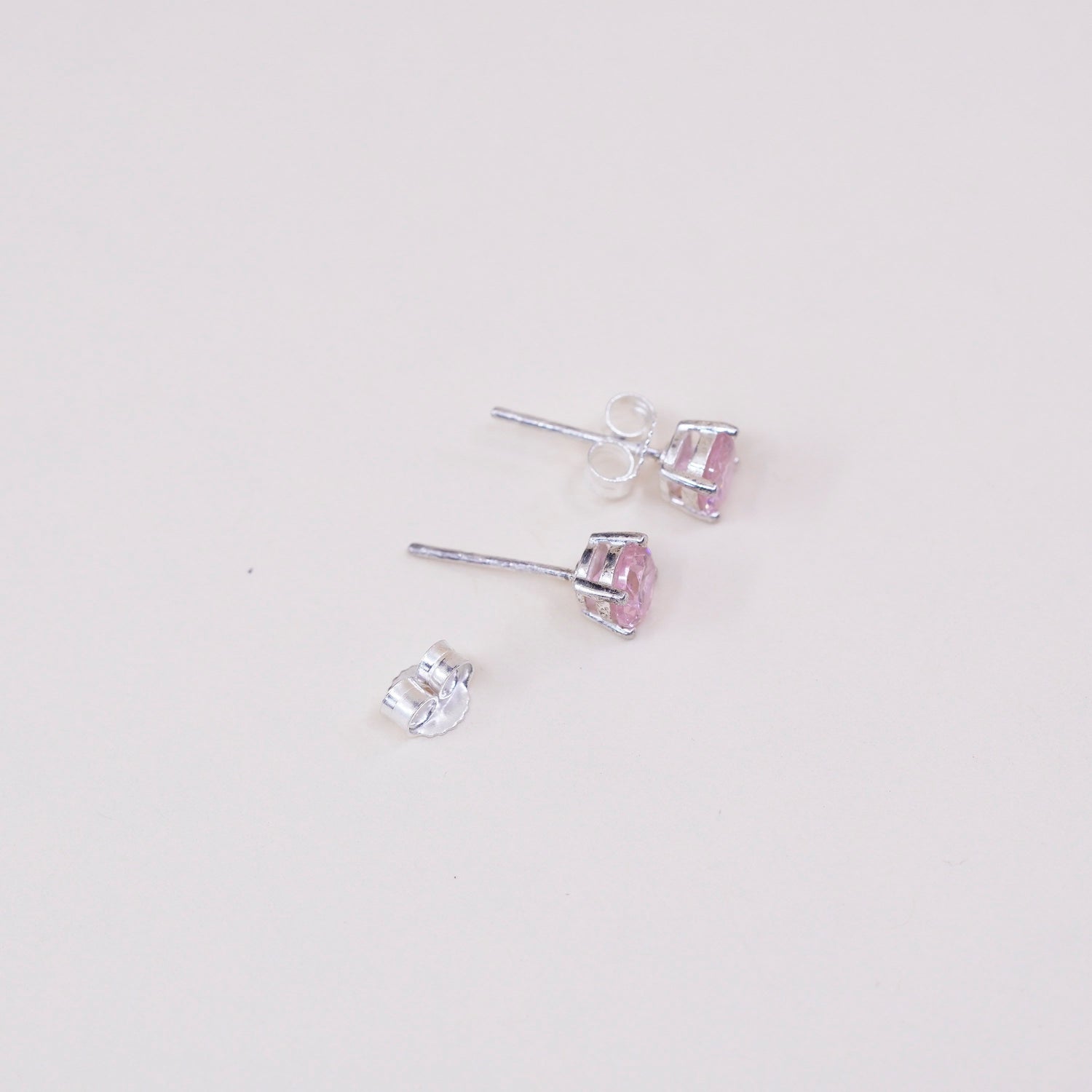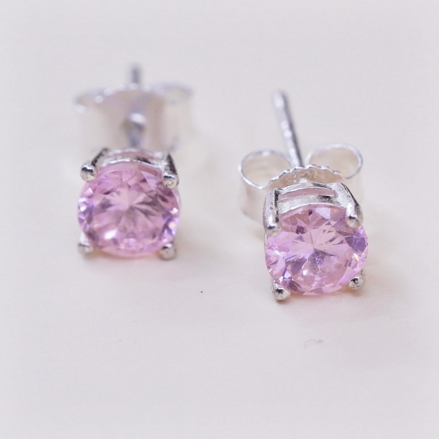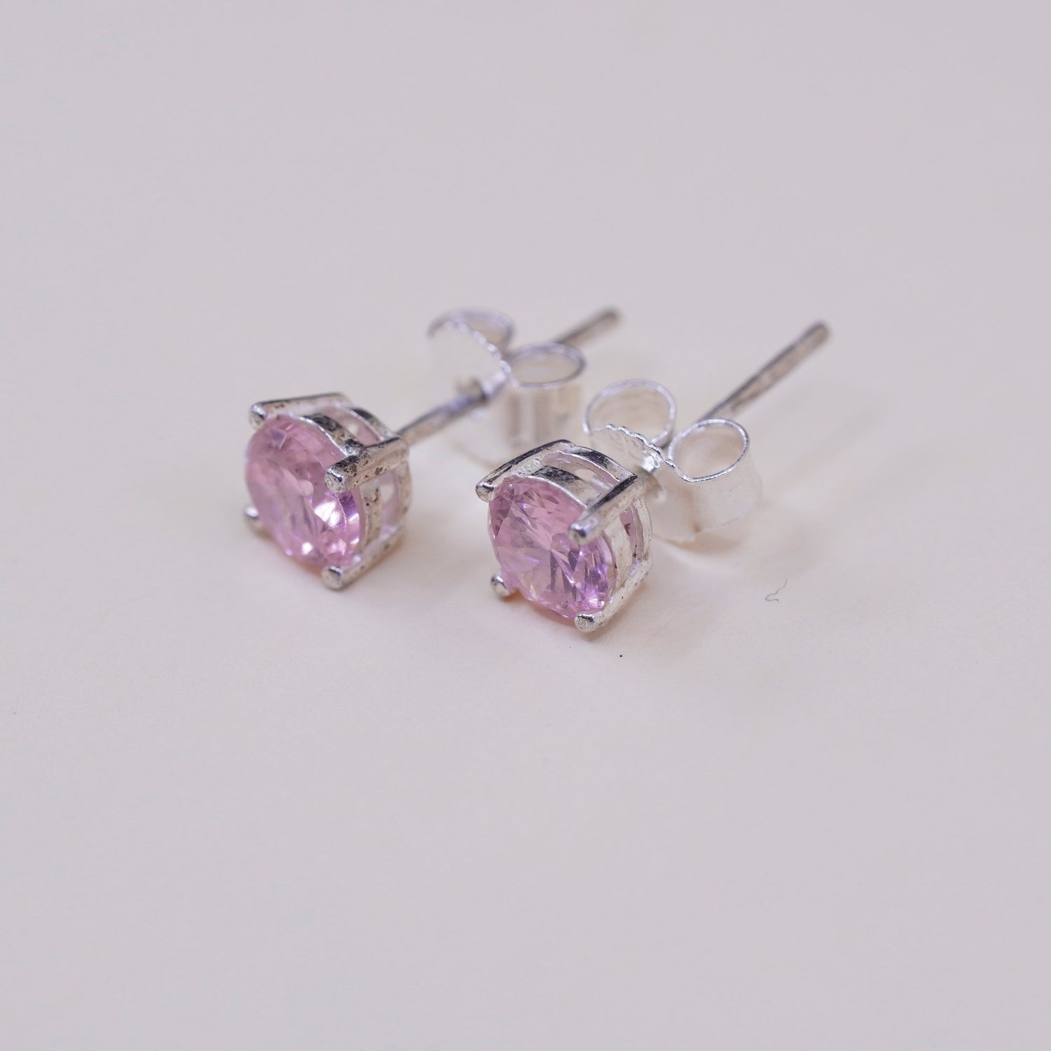 Vintage sterling silver studs with pink Cz, fashion minimalist earrings, stamped 925