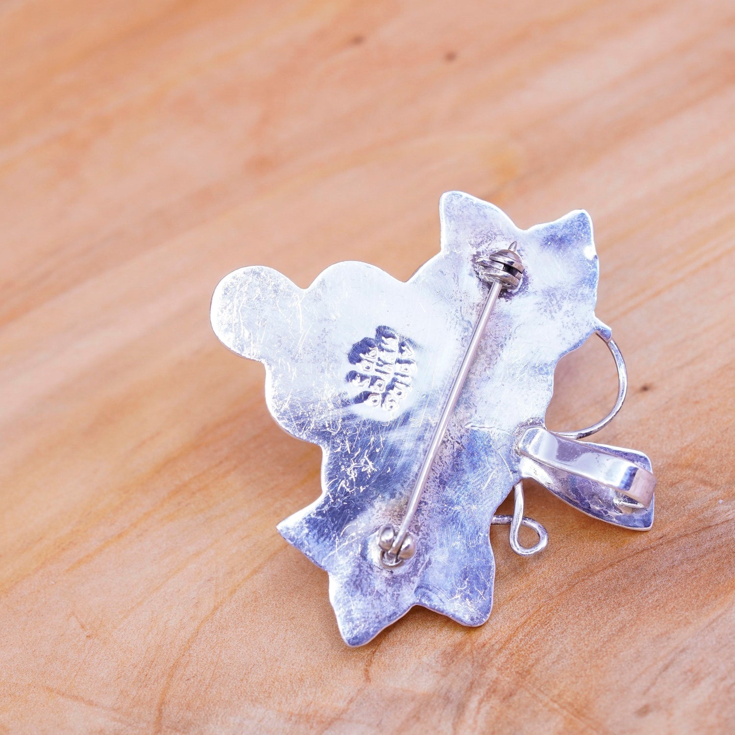 Vintage two tone Mexico sterling silver handmade grapes pendant brooch, stamped 925 Mexico TG-109