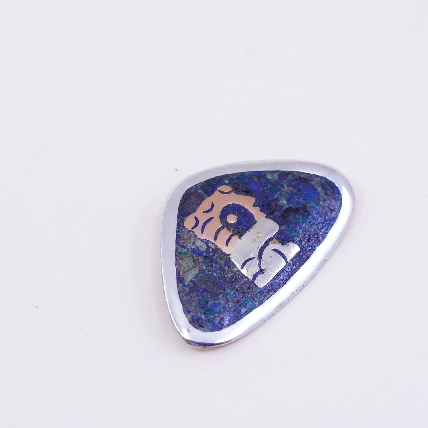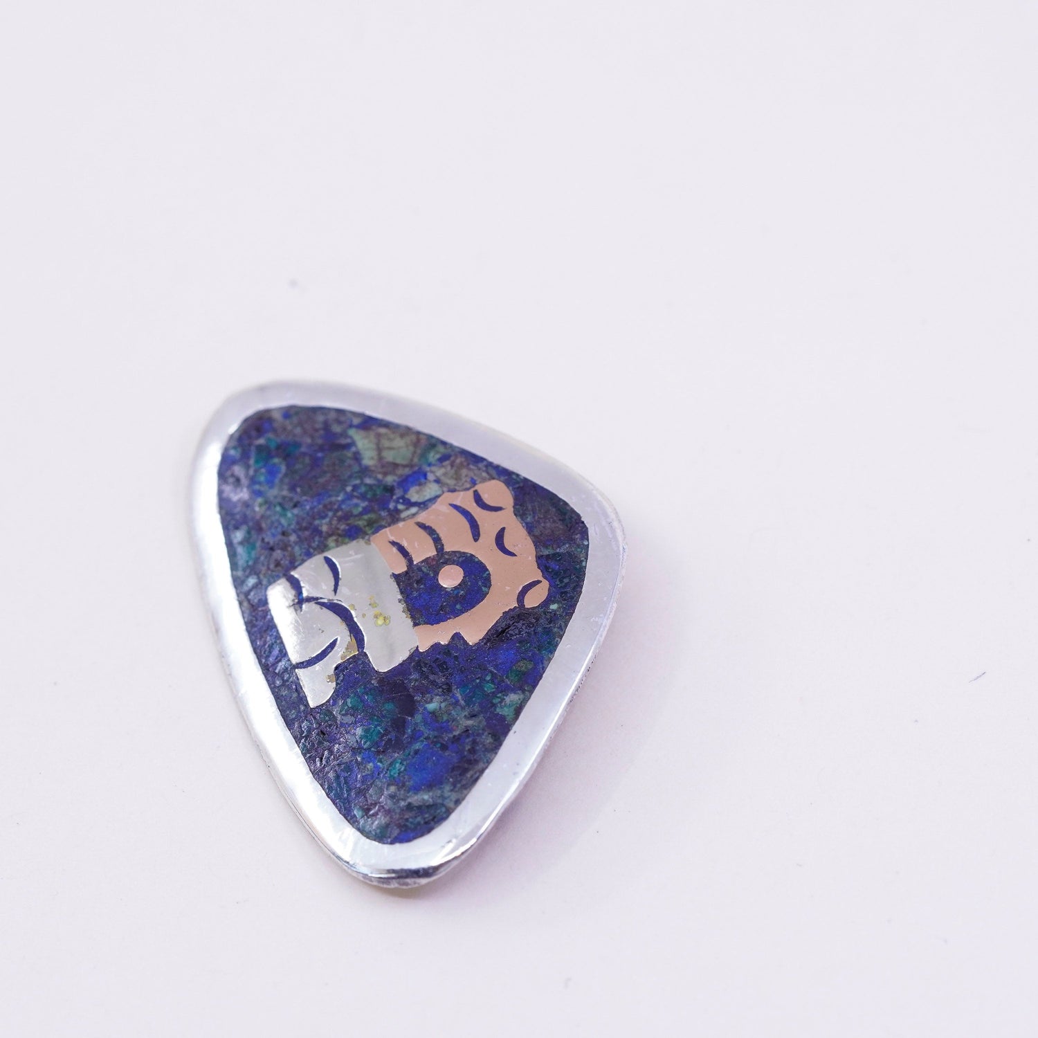 Vintage two tone Sterling silver handmade brooch, taxco 925 copper pendant