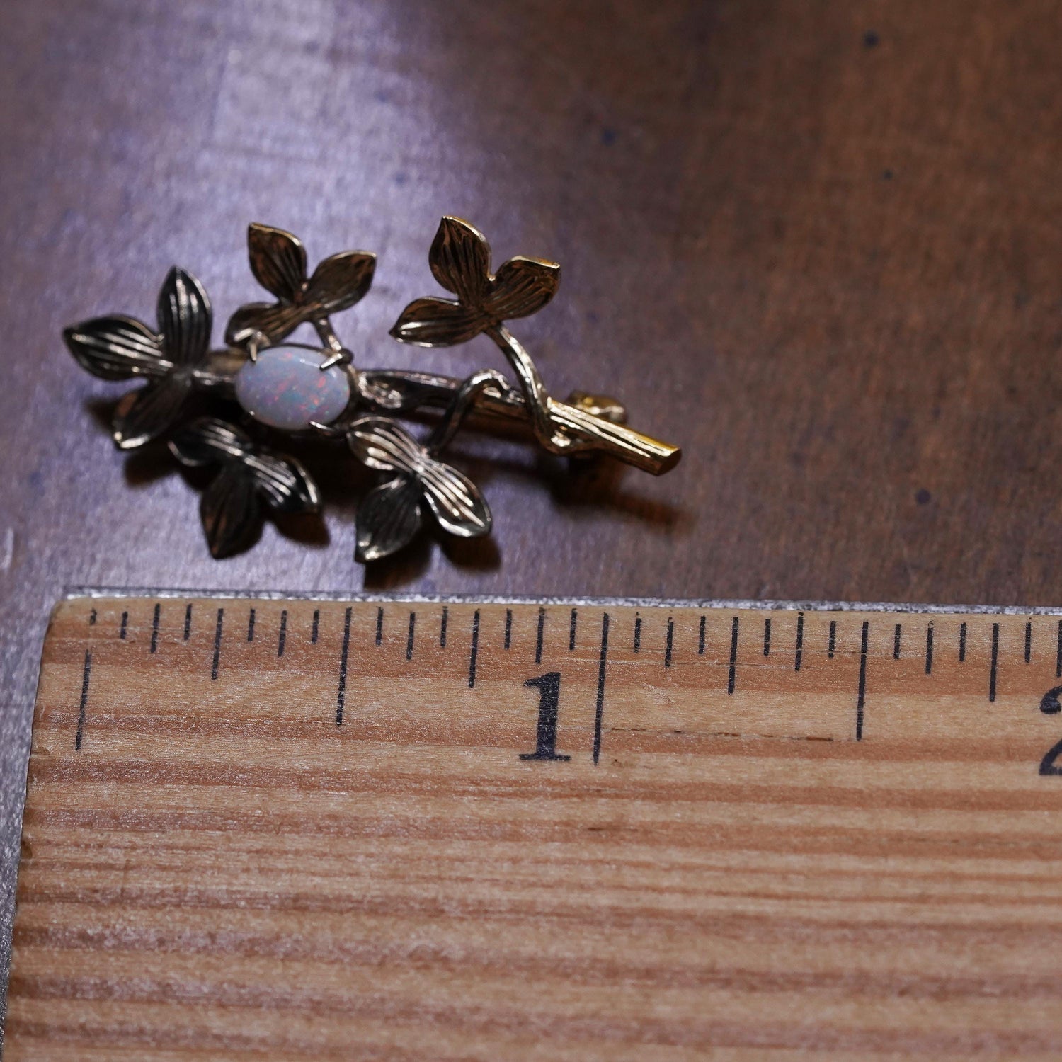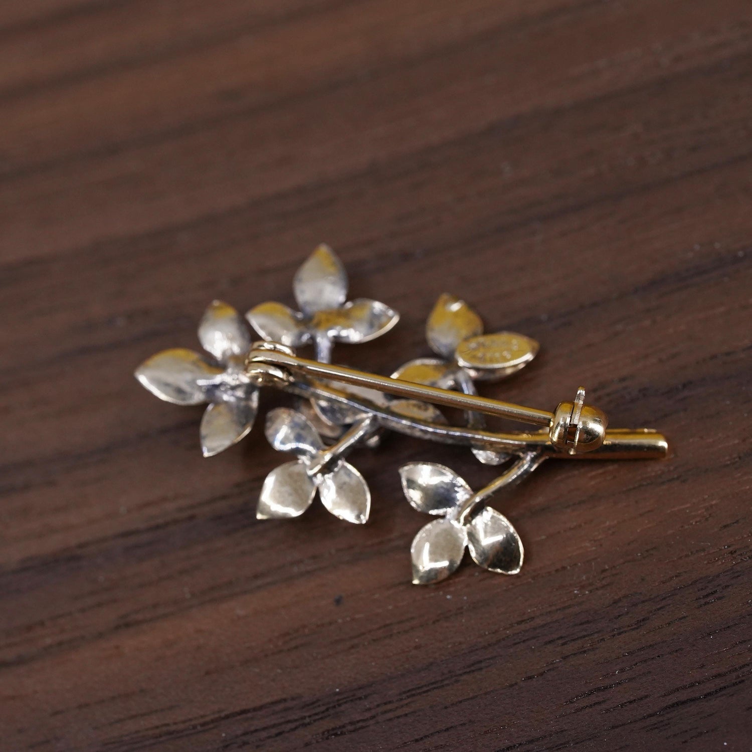 Vintage Vermeil gold over handmade sterling 925 silver tree brooch with opal, stamped ster