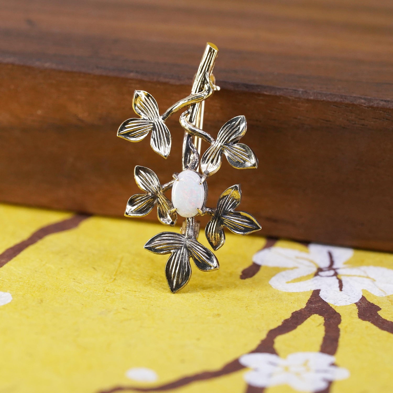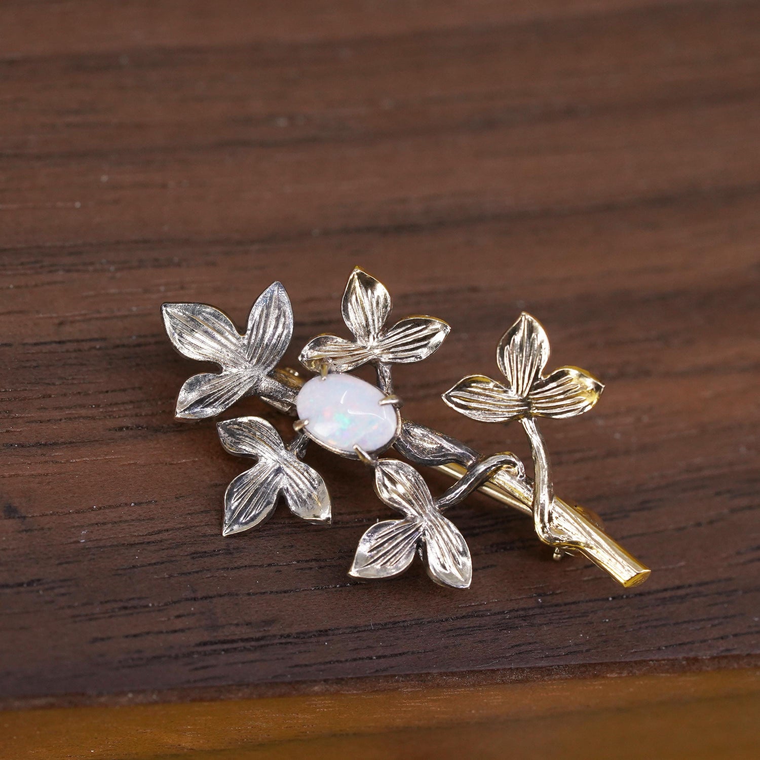 Vintage Vermeil gold over handmade sterling 925 silver tree brooch with opal
