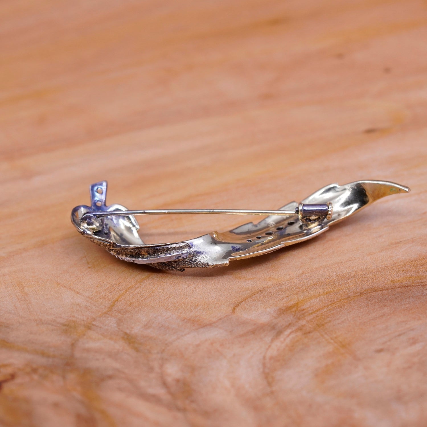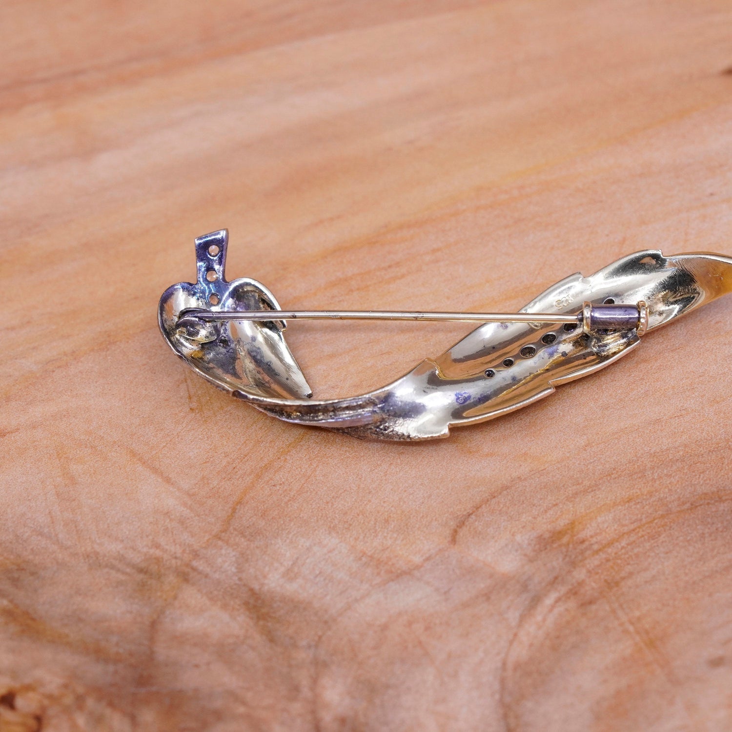 Vintage vermeil gold over sterling 925 silver lear brooch with Cz, stamped 925