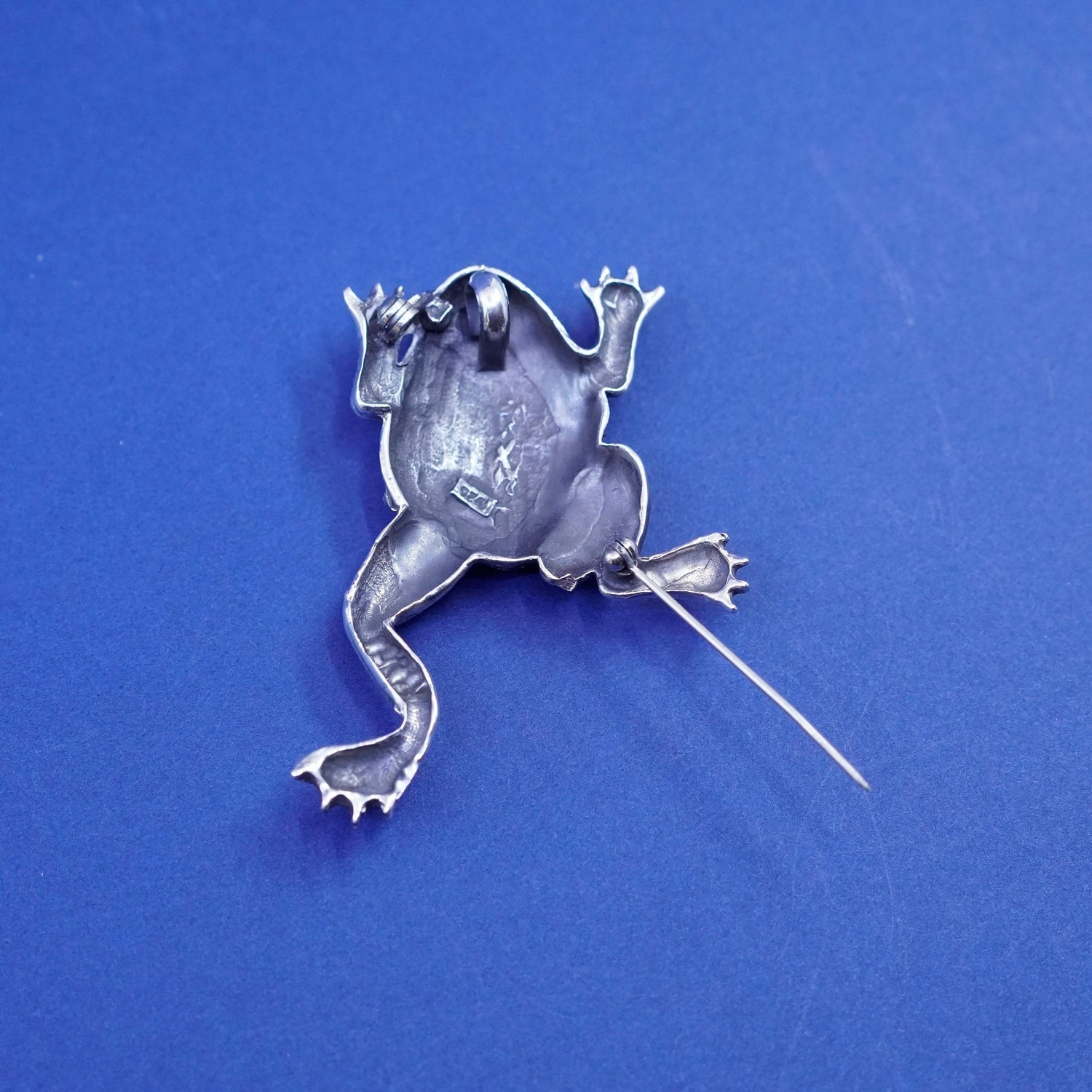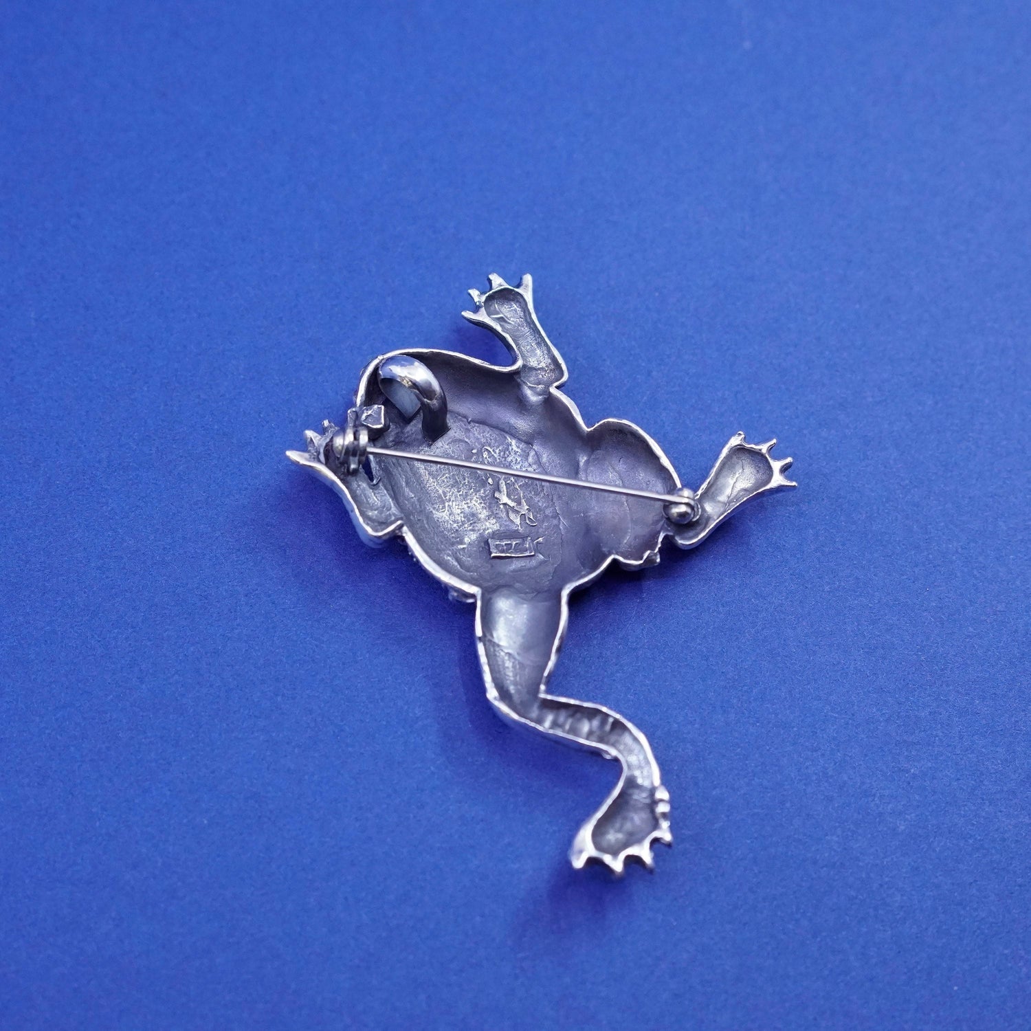 Vintages sterling silver handmade brooch, beaded 925 frog pendant, stamped 925