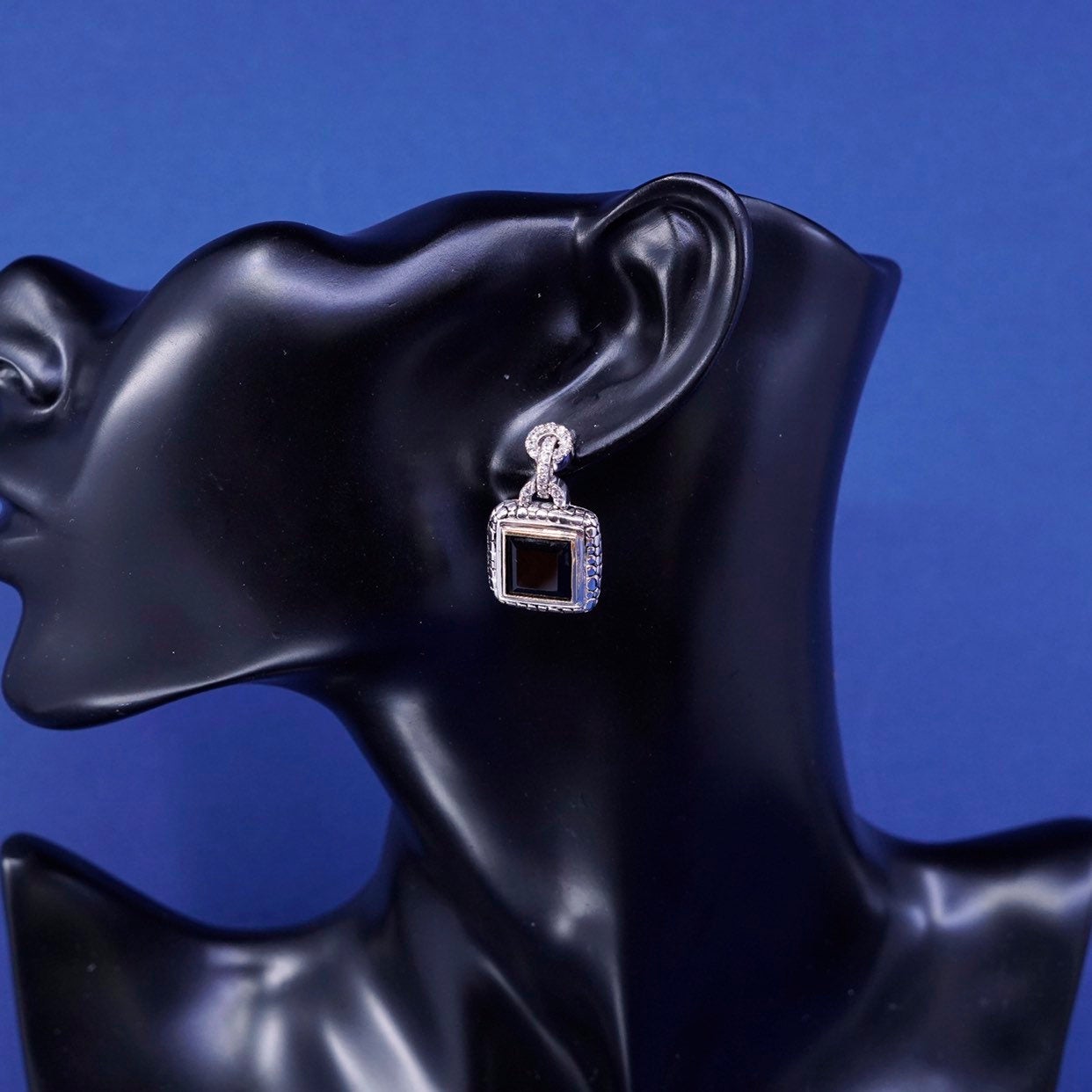 vtg 14K gold accent w/ Sterling925 silver handmade earring w// obsidian drops
