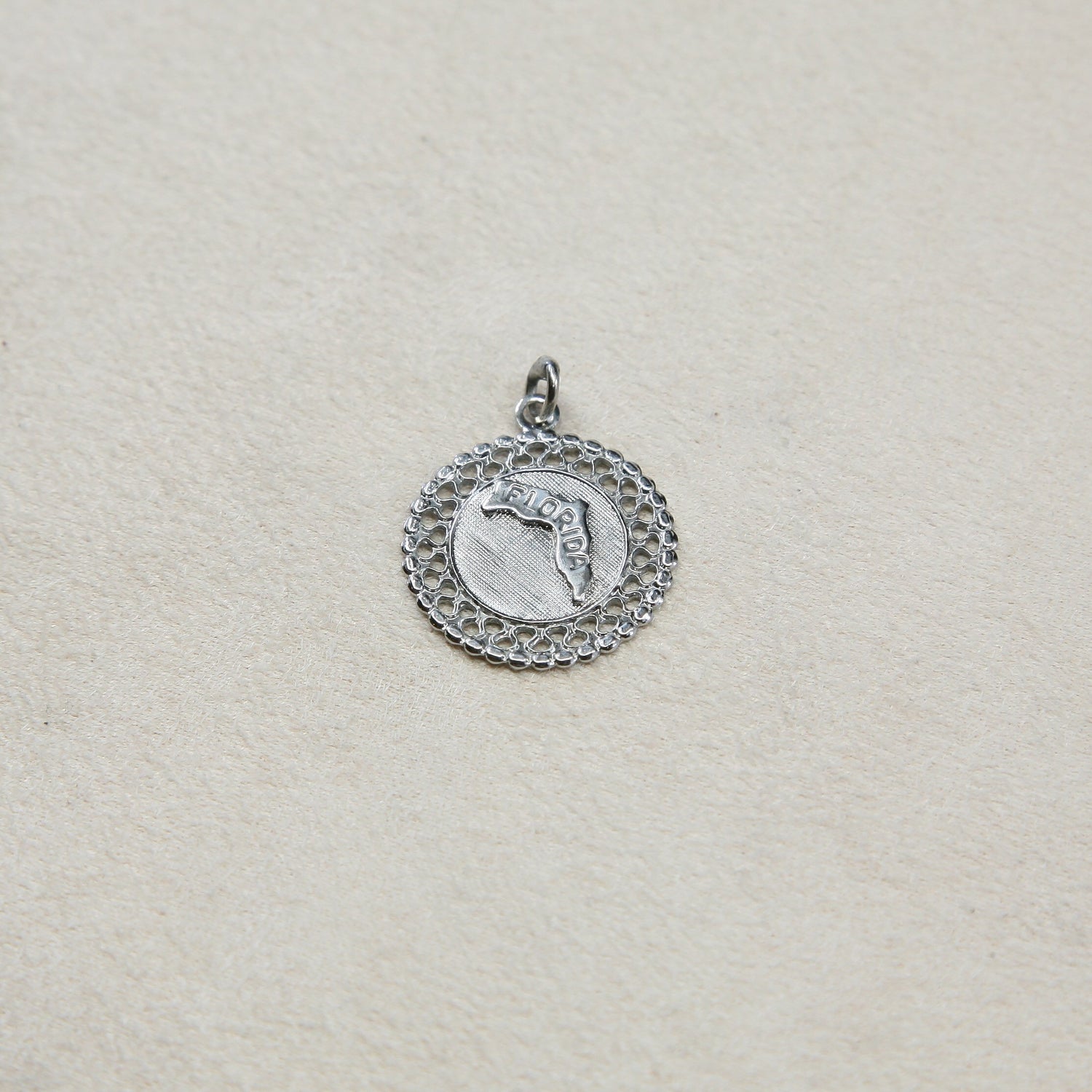 Vintage sterling handmade traveler pendant, 925 silver Florida state tag, stamped ster ABC tdmpu 79