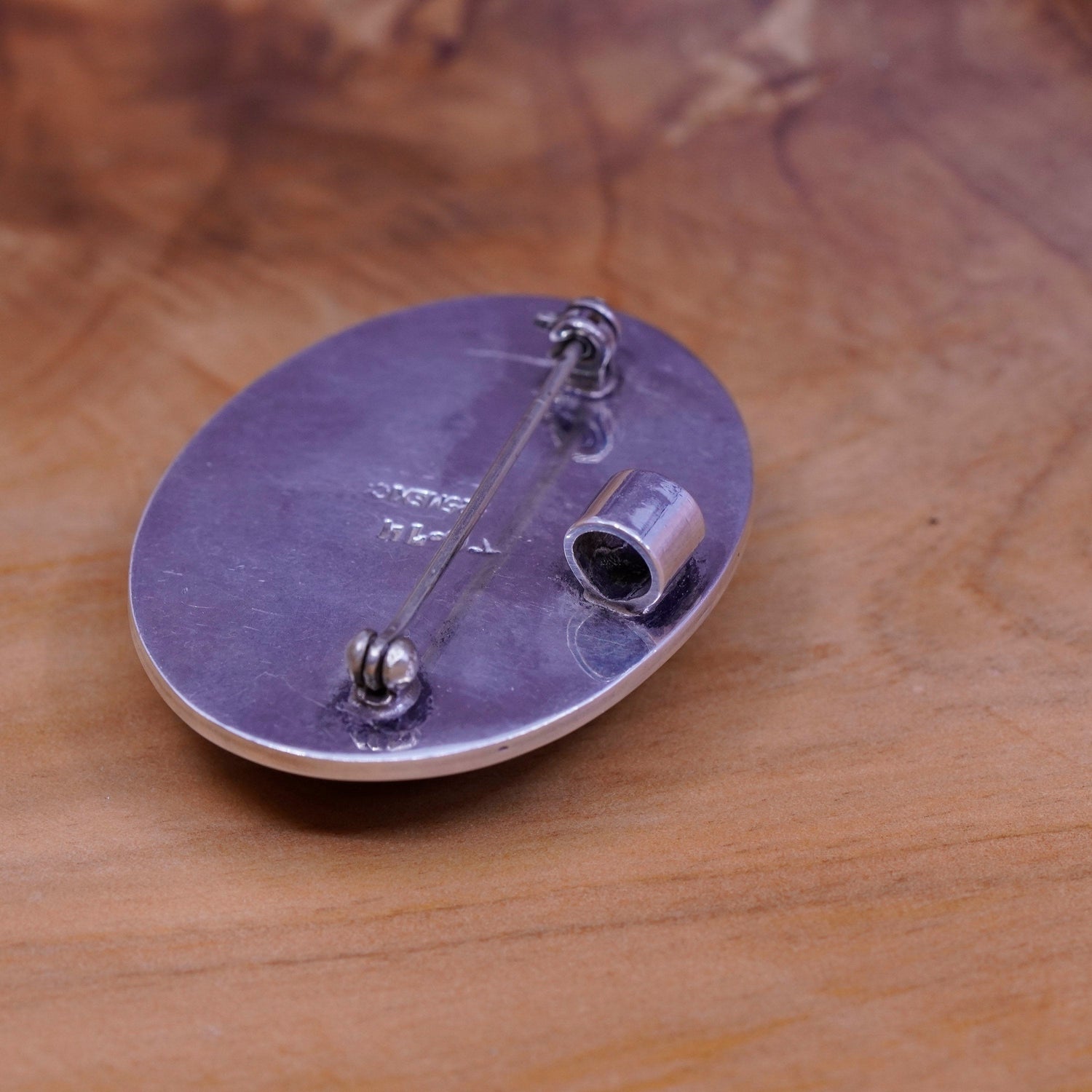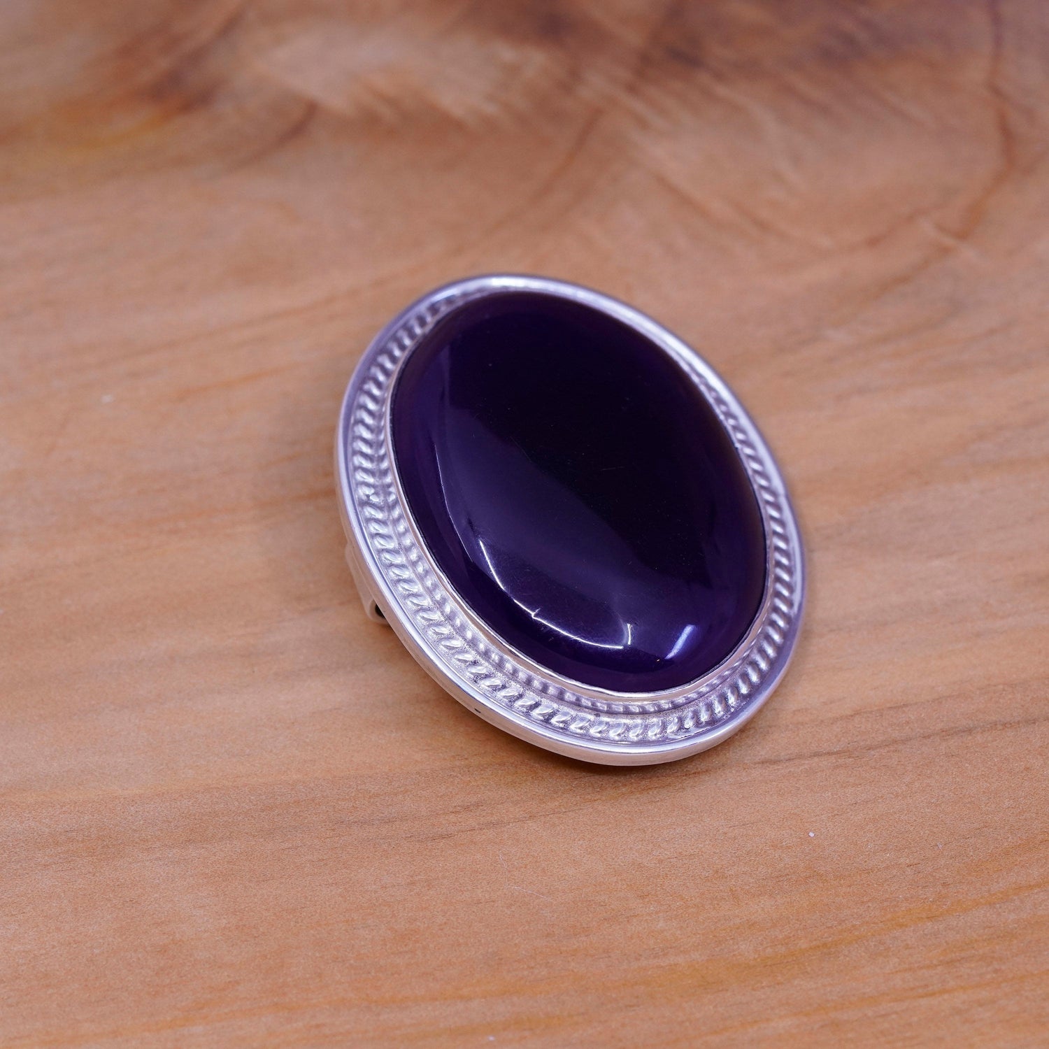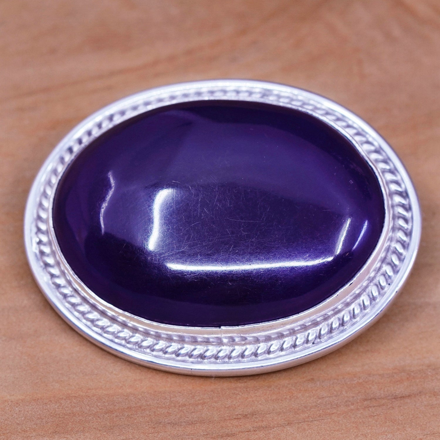 Vintage antique southwestern handmade sterling 925 silver oval brooch pendant with purple onyx inlay, stamped mexico TO-74 925