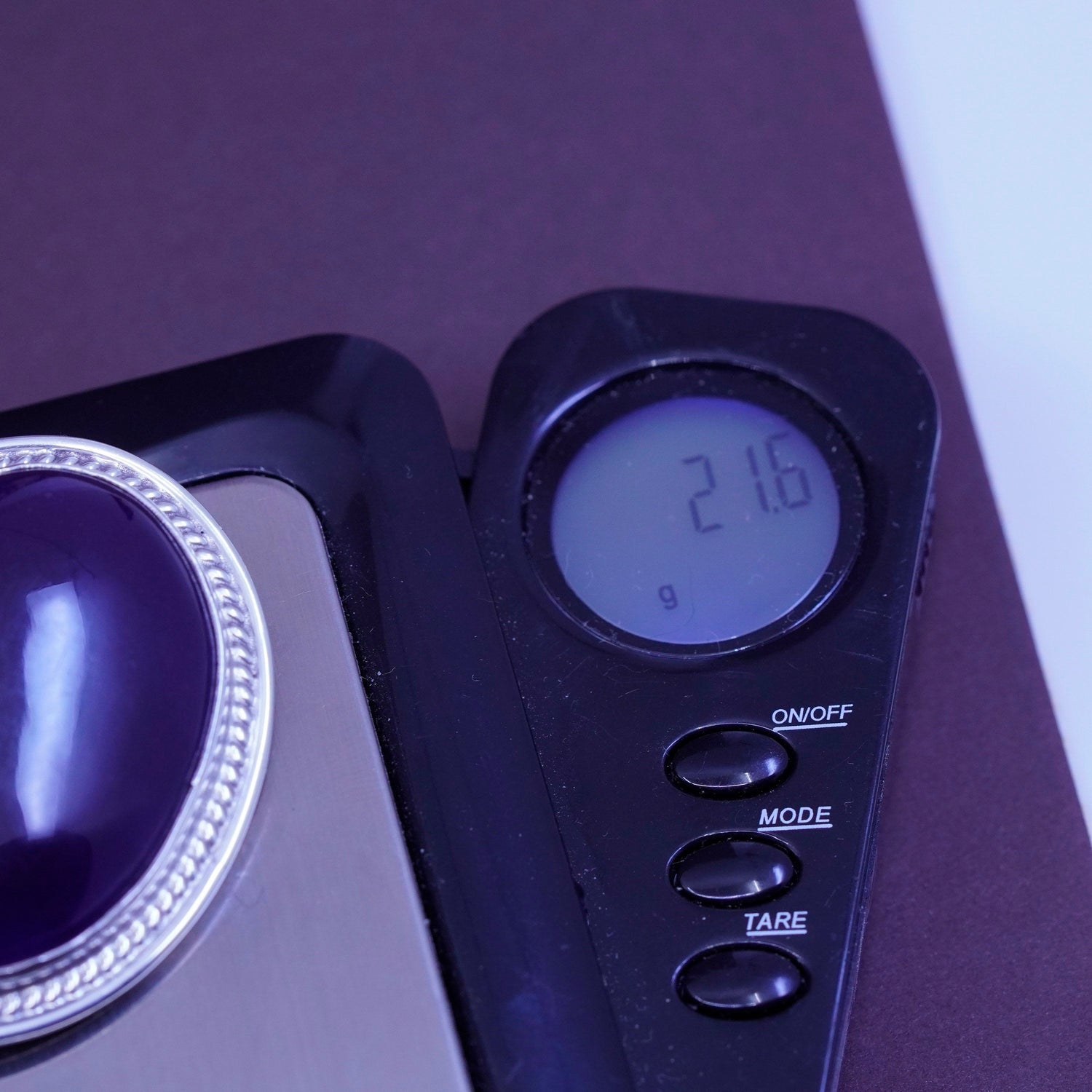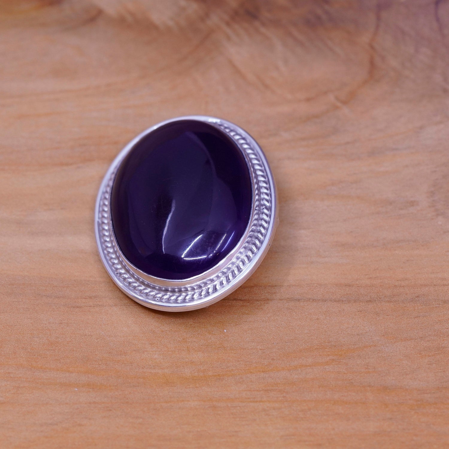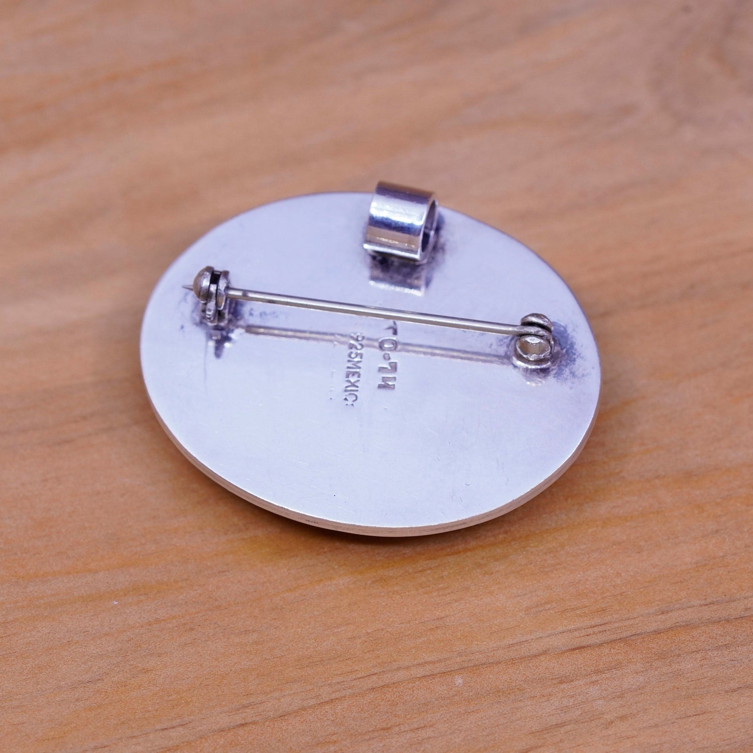 Vintage antique southwestern handmade sterling 925 silver oval brooch pendant with purple onyx inlay, stamped mexico TO-74 925