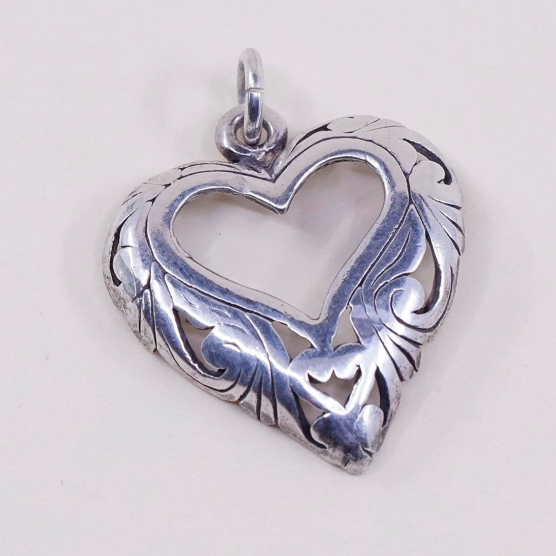 vintage (021322) Bali sterling silver handmade pendant, 925 silver filigree heart charm, stamped sterling