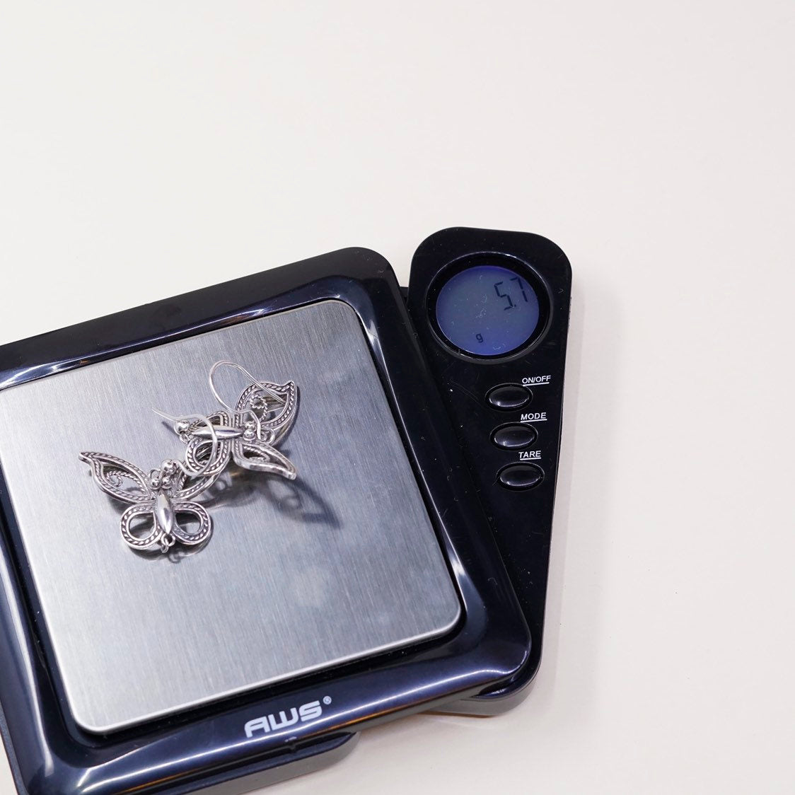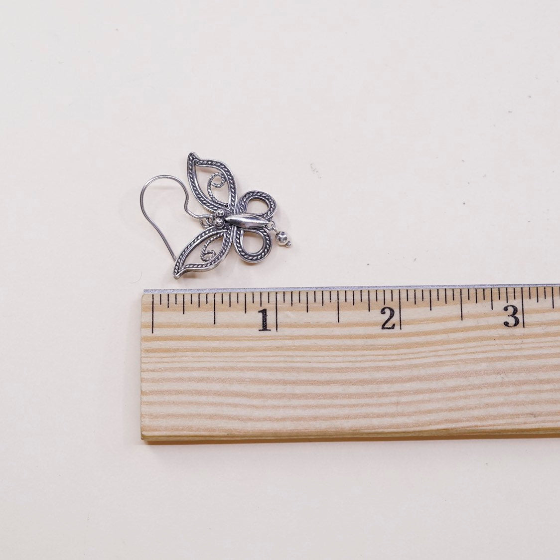 vtg BJ sterling silver handmade earrings, 925 butterfly w/ bead dangles
