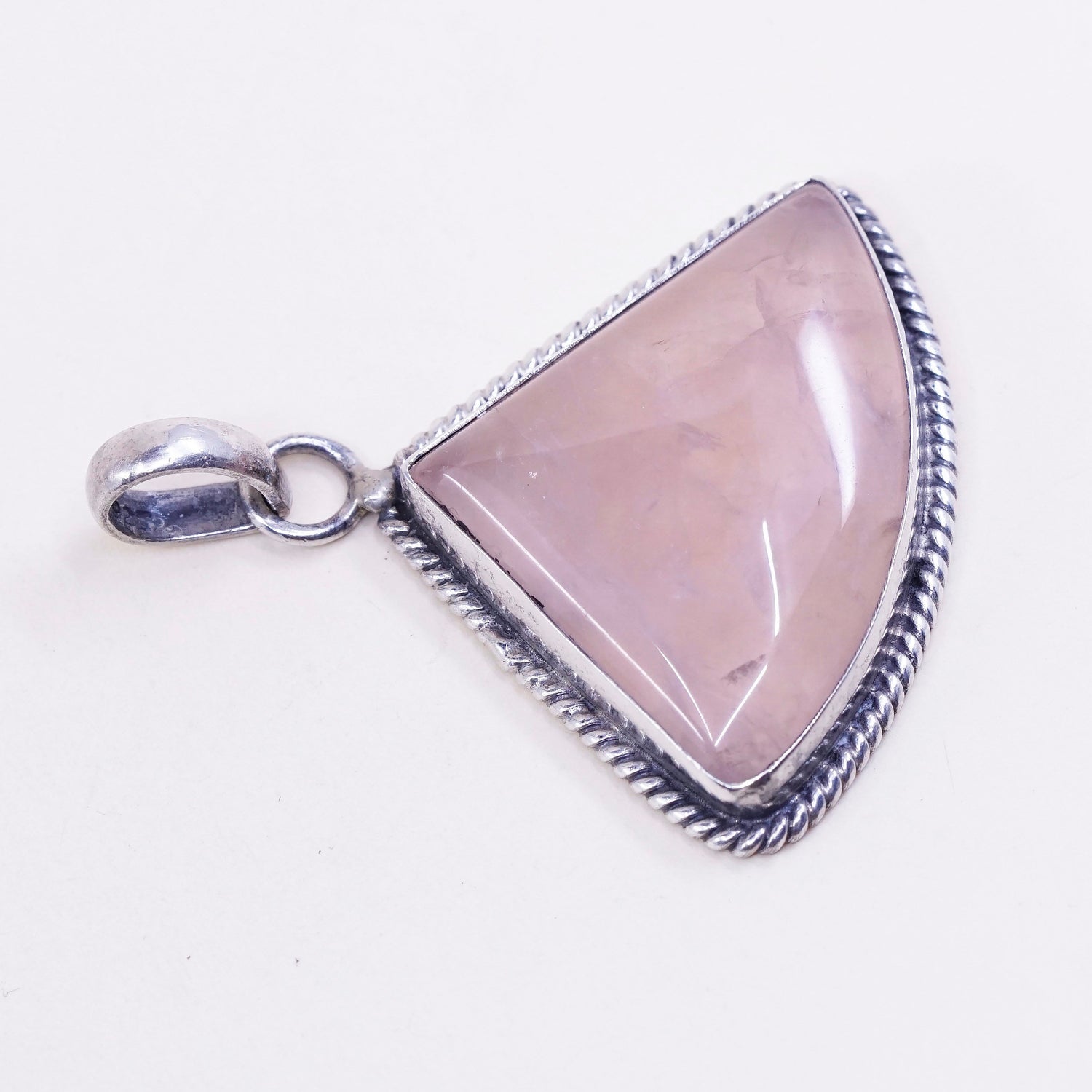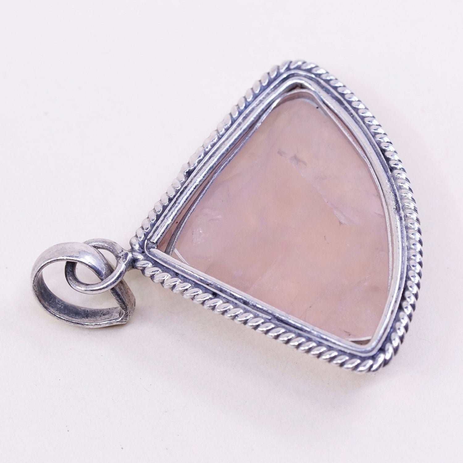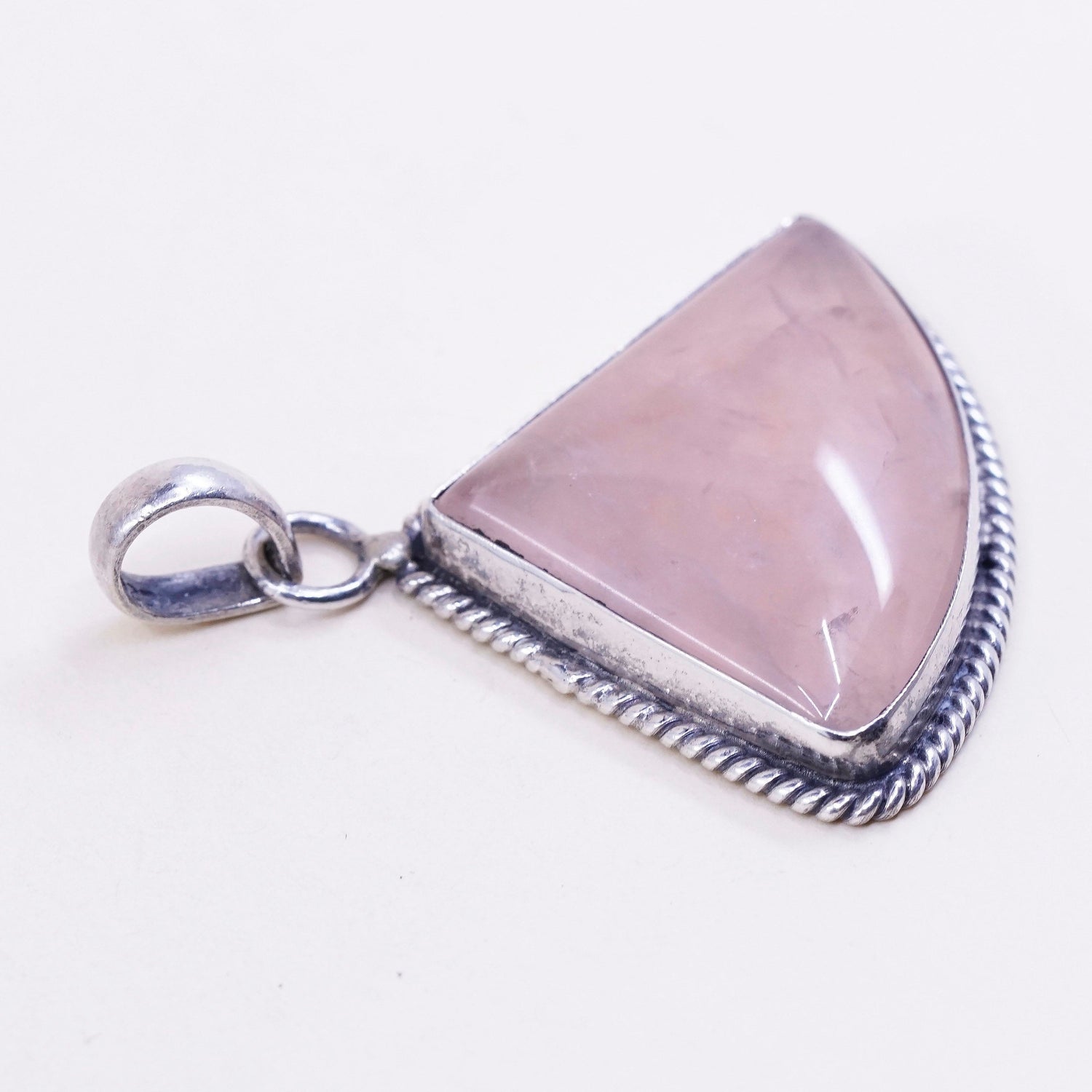 Vintage handmade sterling silver charm, solid 925 silver pink quartz heart pendant, stamped 925