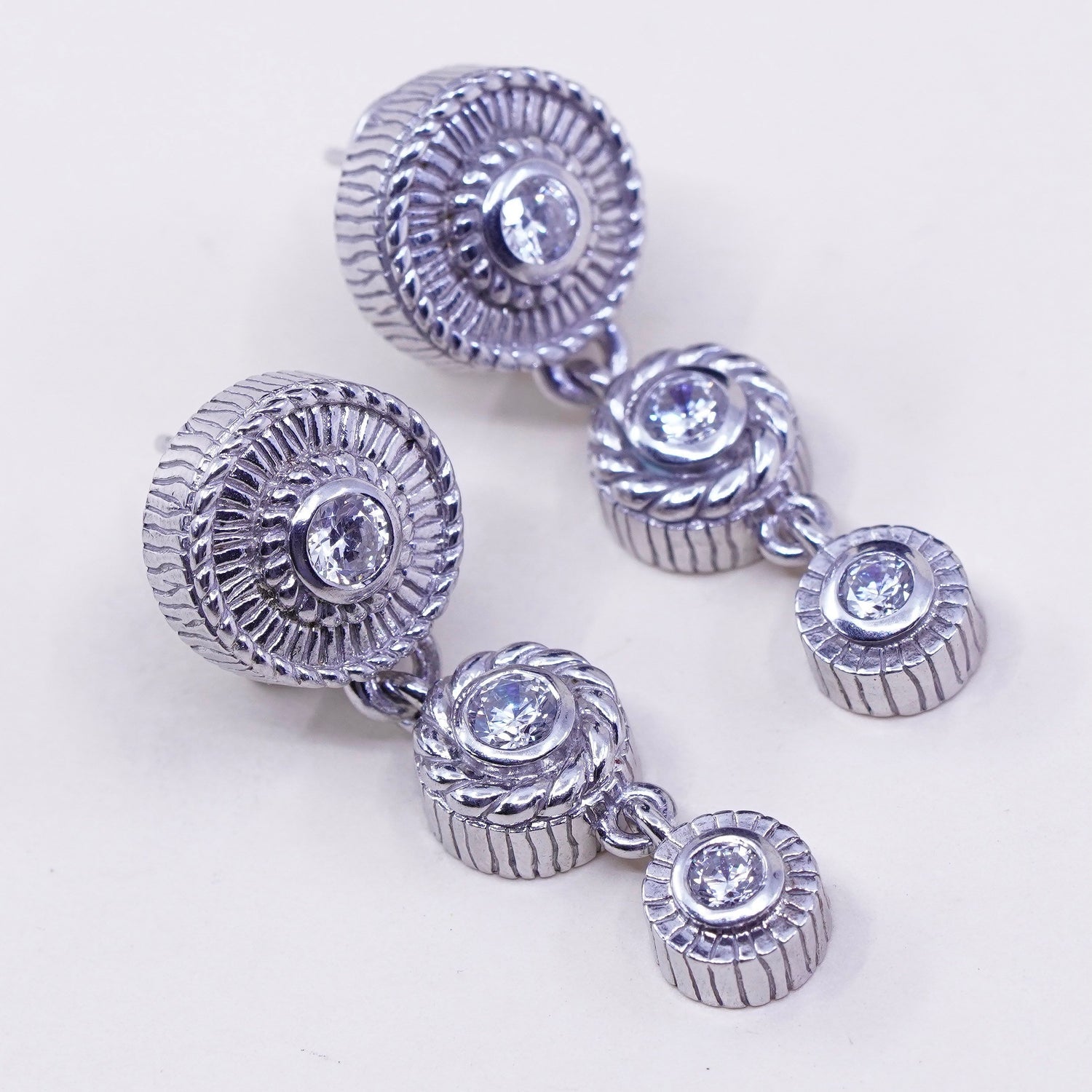 Vintage Judith Ripka Sterling 925 silver handmade earrings, round diamonique dangles, stamped 925 Judith Ripka