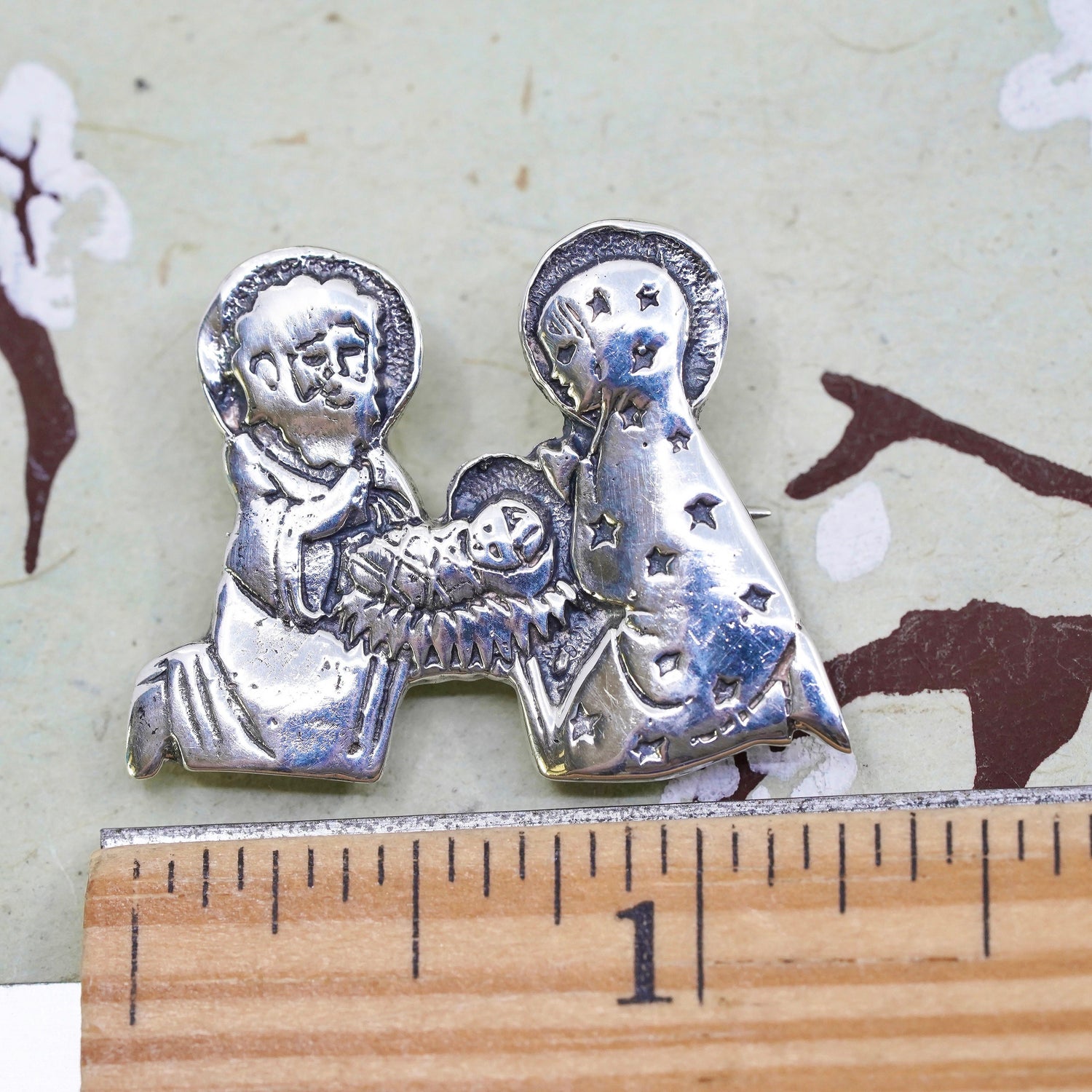 Vintage Mexico sterling 925 silver handmade the Birth Of Jesus brooch pin pendant, stamped 925 Mexico