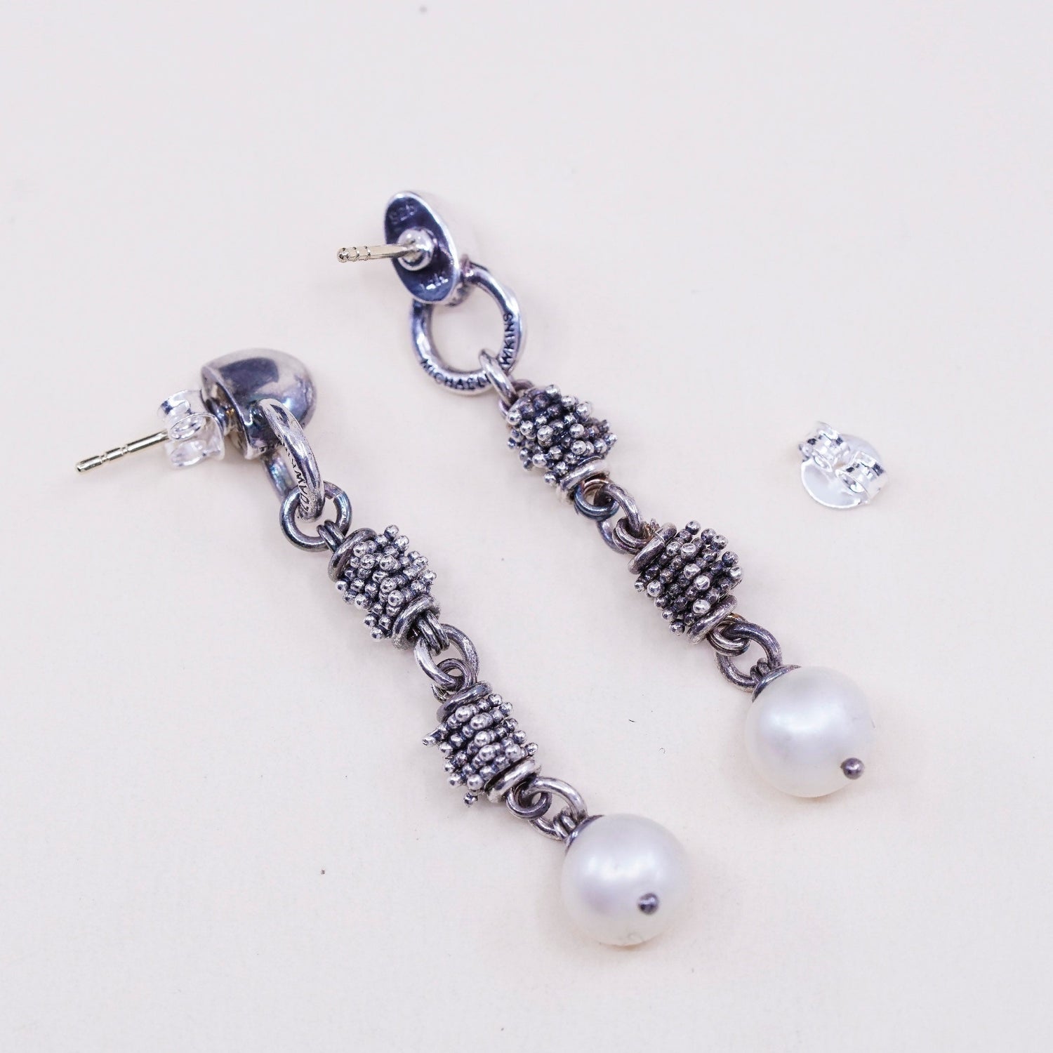 Vintage michael dawkins sterling 925 silver earrings with 14K gold post and pearl, stamped 925 14K Michael Dawkins