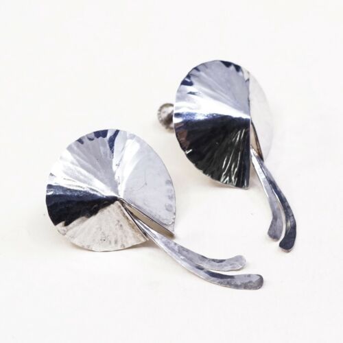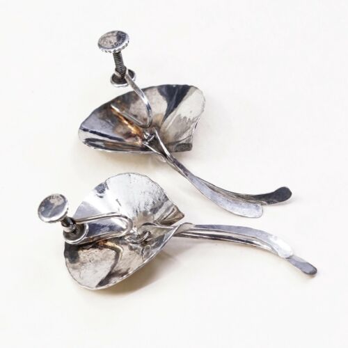 Vtg Modern Sterling 925 Silver Handmade Screw Back Earrings, Stamped Sterling
