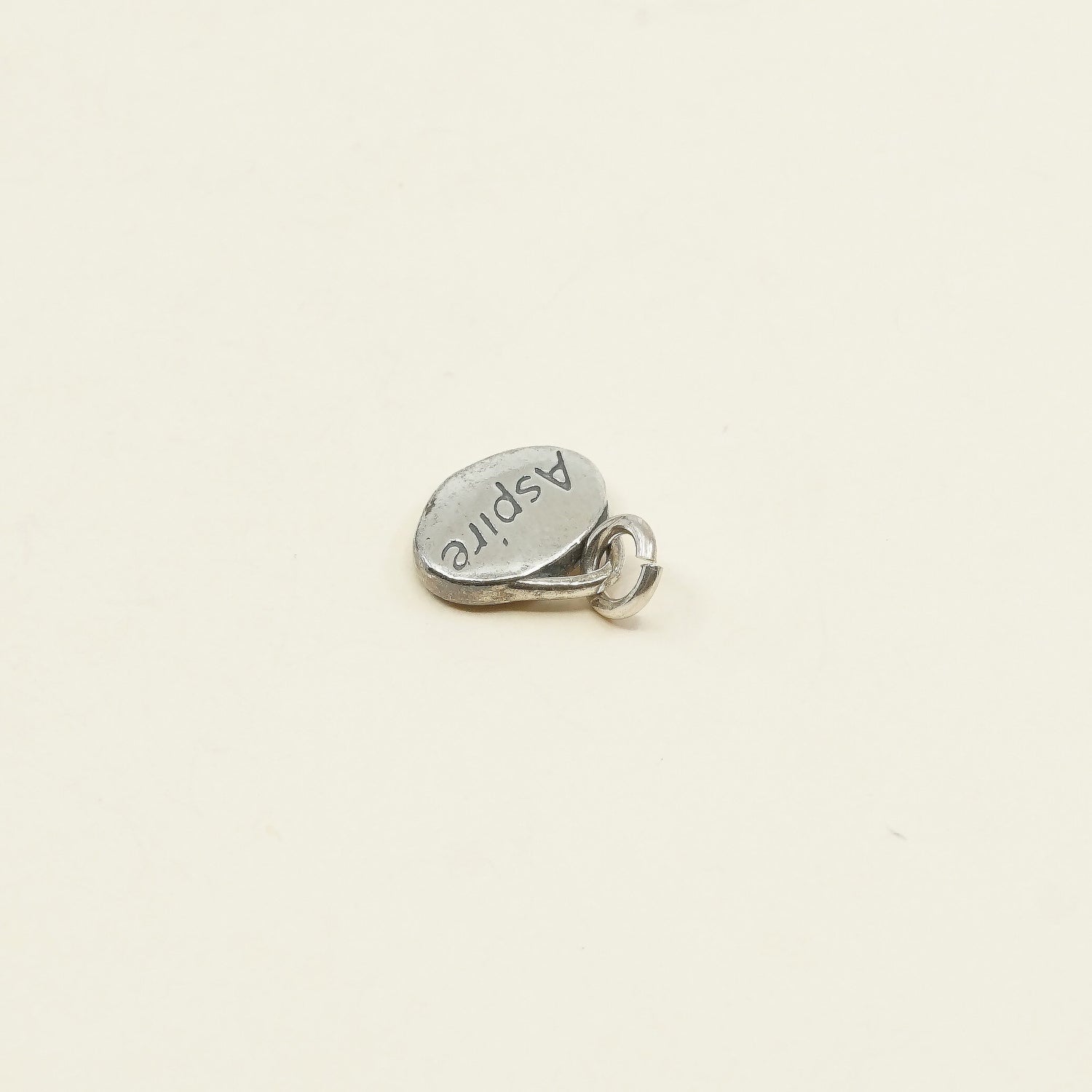 Vintage sterling silver handmade pendant, solid 925 silver tag charm with "aspire" engraved, stamped 925 SLC