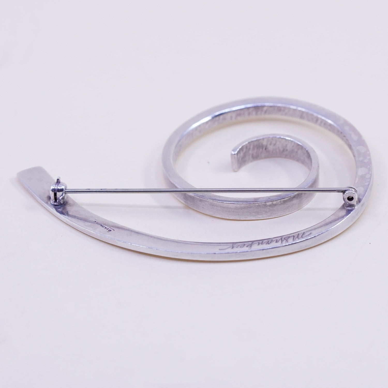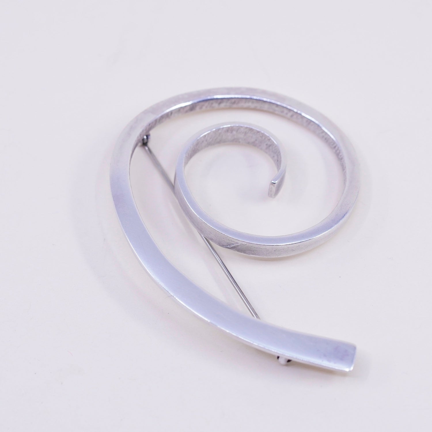 Vintage sterling 925 silver handmade brooch, minimalist, simple modern swirl design, stamped Sterling mshankey