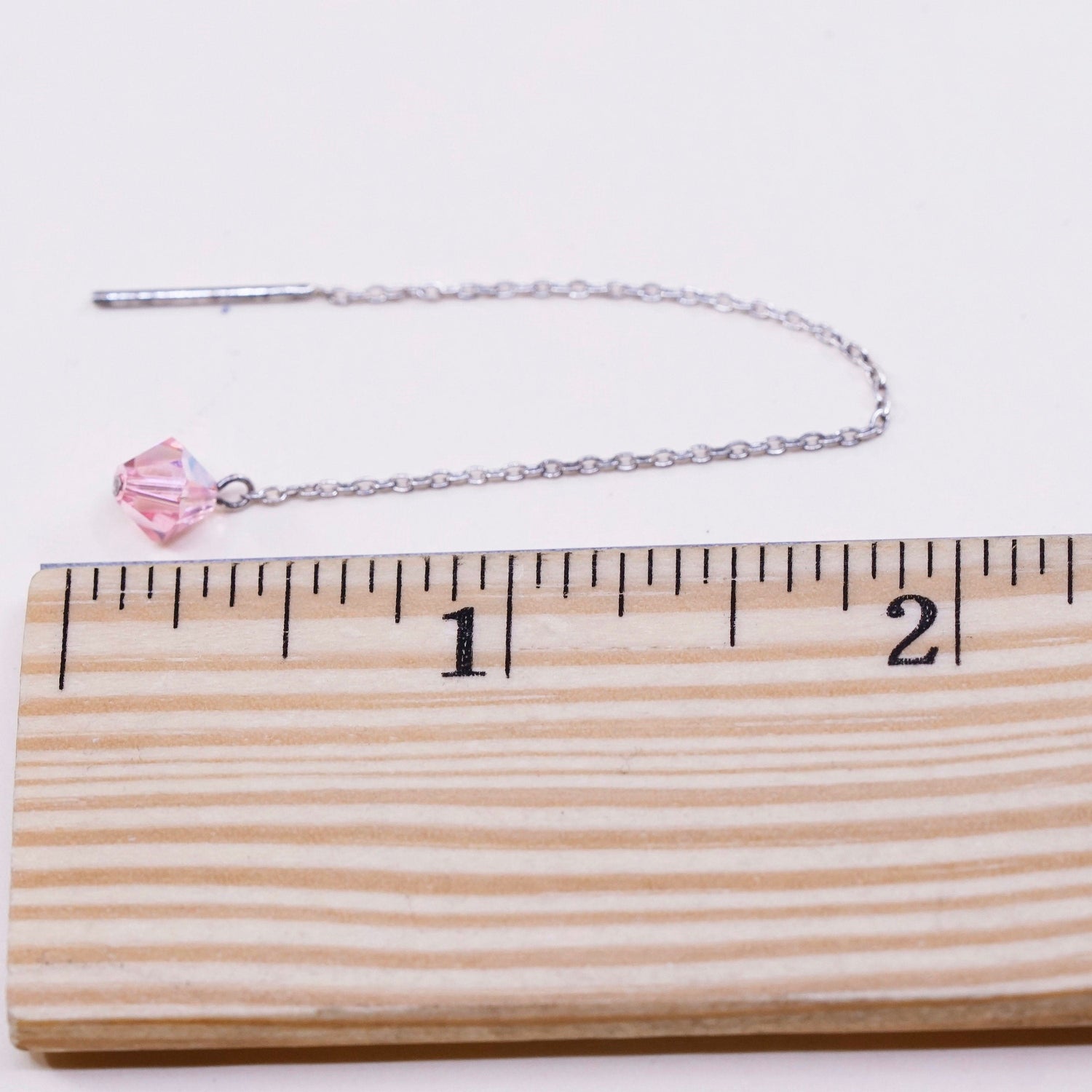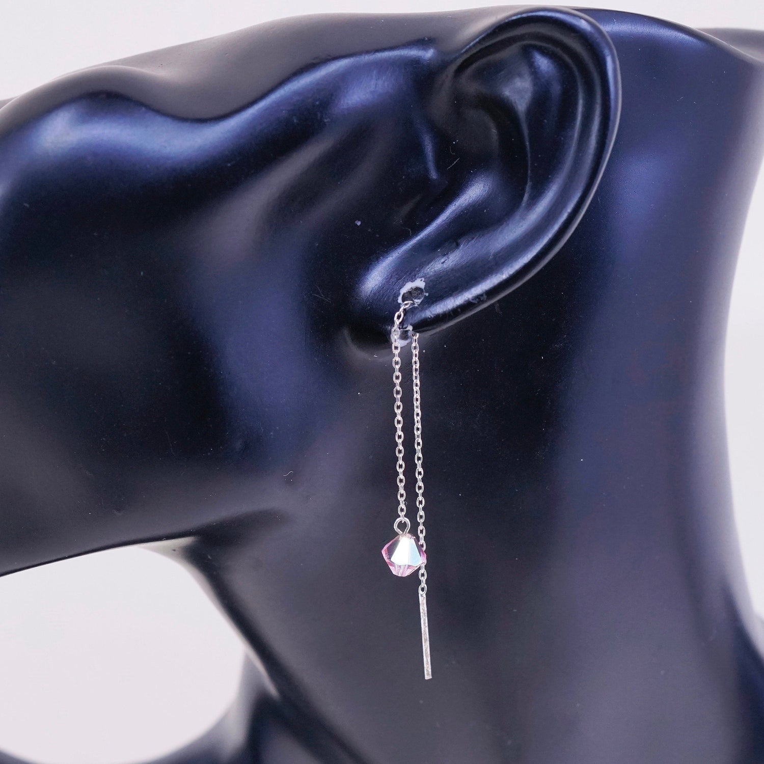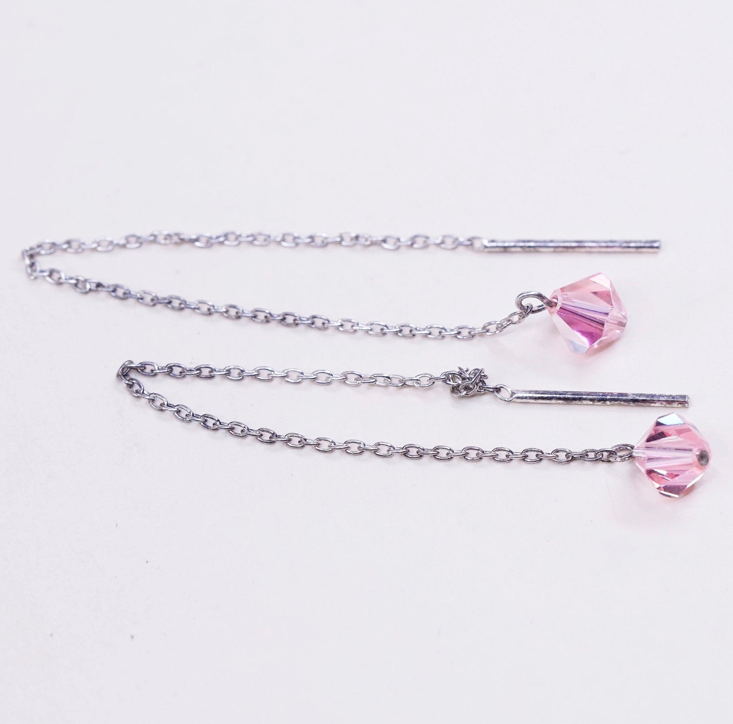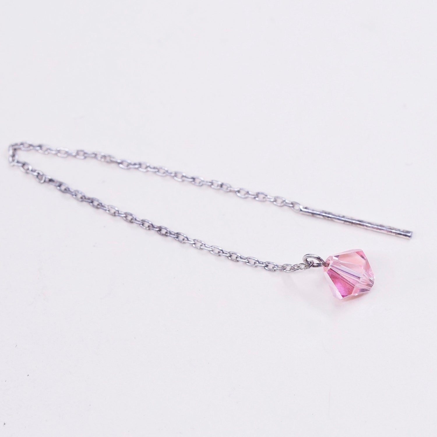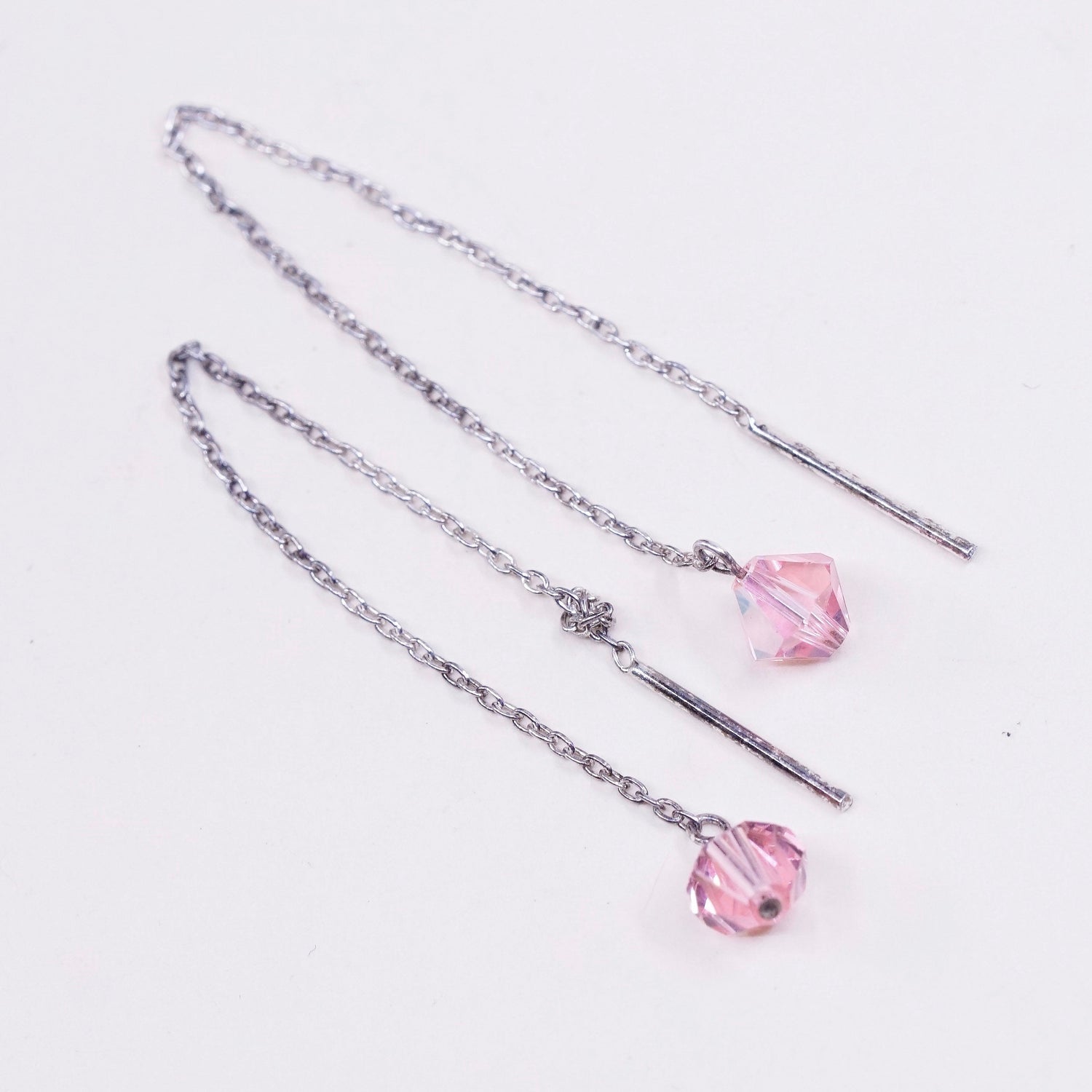 Vintage Sterling 925 silver handmade earrings with light pink crystal, silver tested, the knot in the photo is untangled